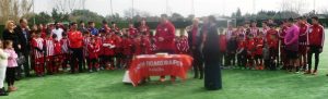 Οι τυχεροί αθλητές Χαρμαντάς, Μακρόπουλος και Δειμέζης πήραν από ένα ζευγάρι παπούτσια αλλά και δώρα από την Διεύθυνση Ακαδημίας Ολυμπιακού.
