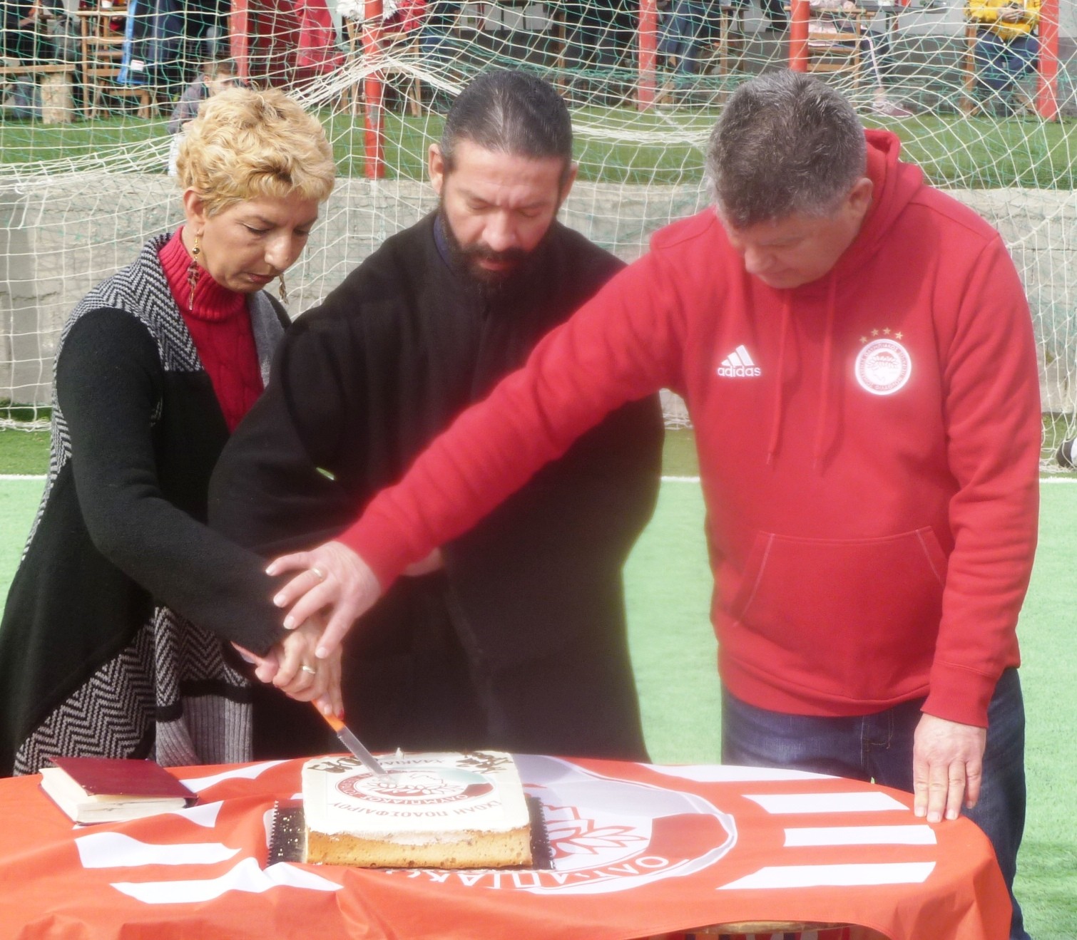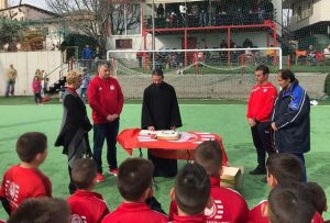 Προπονητές αθλητές και γονείς έδωσαν το παρών στην εκδήλωση και για ακόμα μία χρονιά ο Πάτερ Χρήστος ευλόγησε την πρωτοχρονιάτικη πίτα και στο τέλος μαζί με την Πρόεδρο της ομάδας κ. Κούτουλα και τον Διευθυντή της Σχολής κ. Ρόγκα έγινε η κοπή που τα τυχερά κομμάτια είχαν τρία φλουριά.