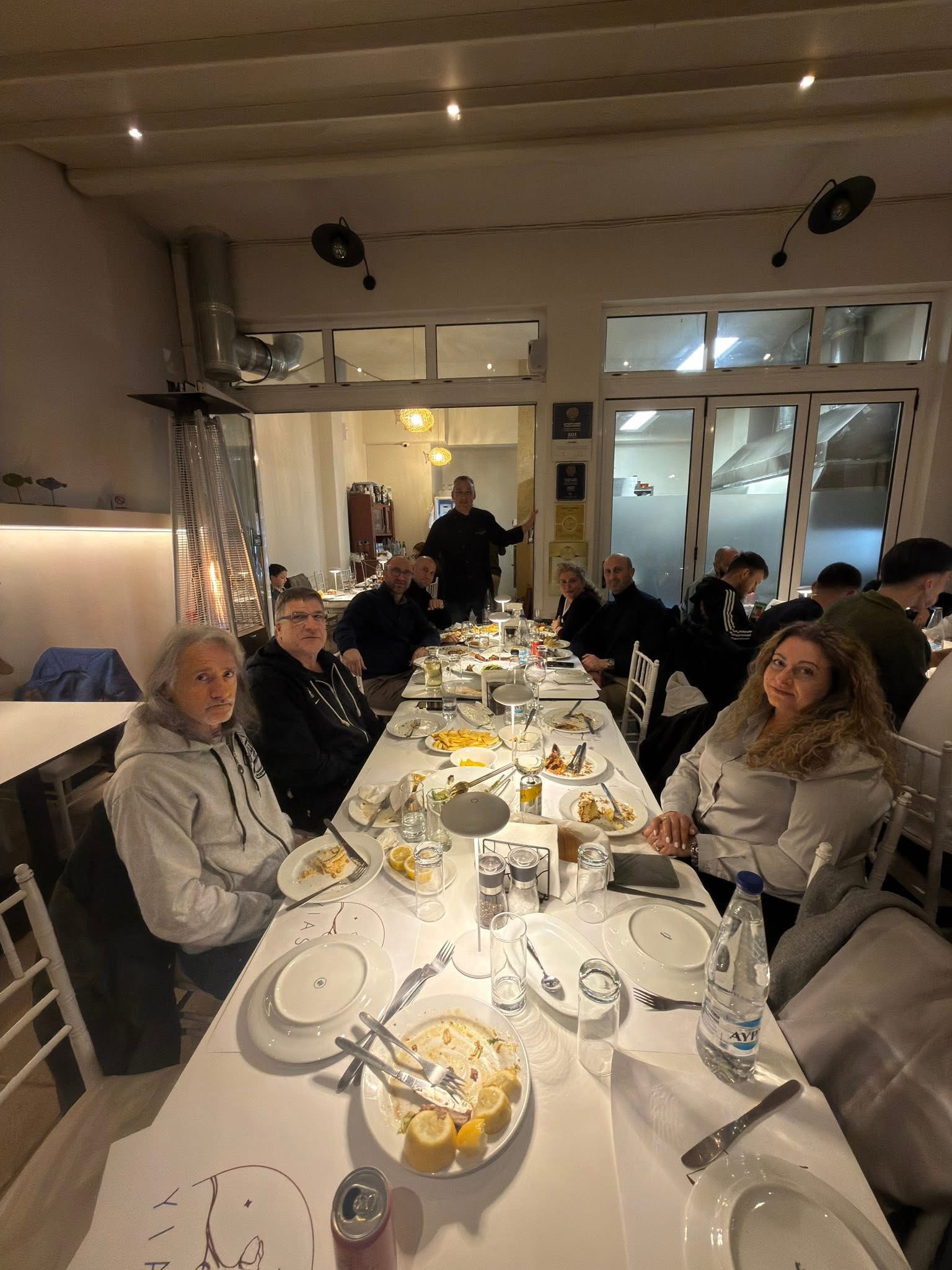Παίχτες, προπονητές και διοίκηση παρευρέθηκαν και δείπνησαν στο γνωστό εστιατόριο στα Λουτρά Αιδηψού εν μέσω εβδομάδας χωρίς αγώνα λόγω τριημέρου Καθαράς Δευτέρας.