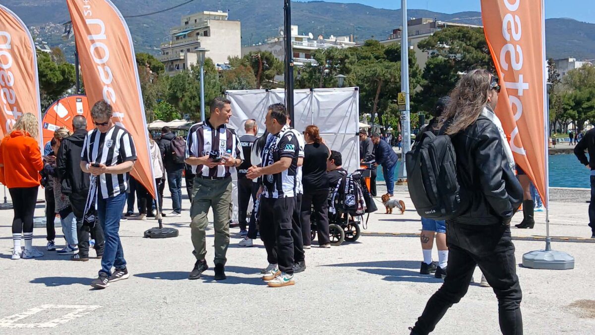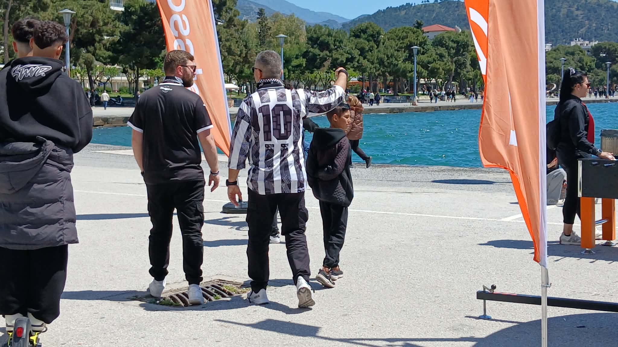 Από τις πρώτες ώρες της ημέρας, οι αφίξεις φιλάθλων ήταν συνεχείς, δημιουργώντας μια εντυπωσιακή εικόνα σε δρόμους, πλατείες και παραλιακό μέτωπο. Σημαίες, κασκόλ και φανέλες των ομάδων κυριαρχούν παντού, ενώ τα συνθήματα και οι ιαχές δίνουν τον τόνο της ποδοσφαιρικής γιορτής.