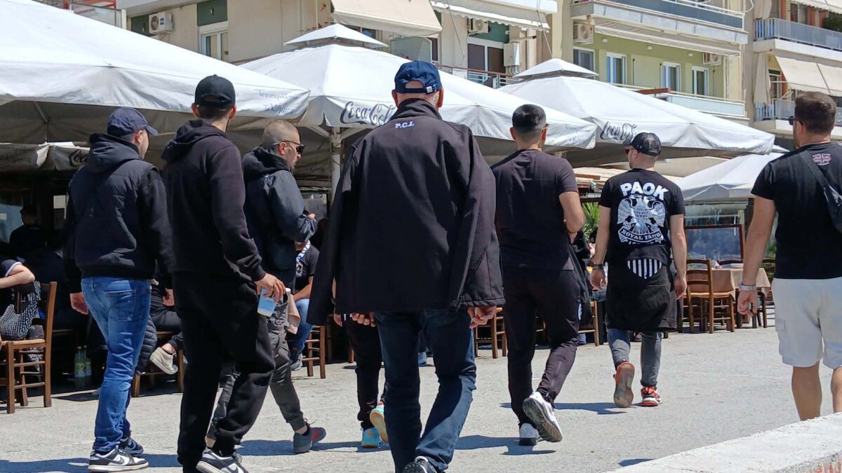 Οπως αναφέρει η ιστοσελίδα του thenewspaper.gr, τσιπουράδικα, οι καφετέριες και τα εστιατόρια γέμισαν ασφυκτικά, με τους φιλάθλους να απολαμβάνουν τη φιλοξενία της πόλης, δημιουργώντας ένα ζωντανό και παλλόμενο σκηνικό. Παρά τον έντονο παλμό, το κλίμα παραμένει εξαιρετικό, με τους οπαδούς των δύο ομάδων να συνυπάρχουν ειρηνικά και να ανταλλάσσουν πειράγματα σε αθλητικό πνεύμα.