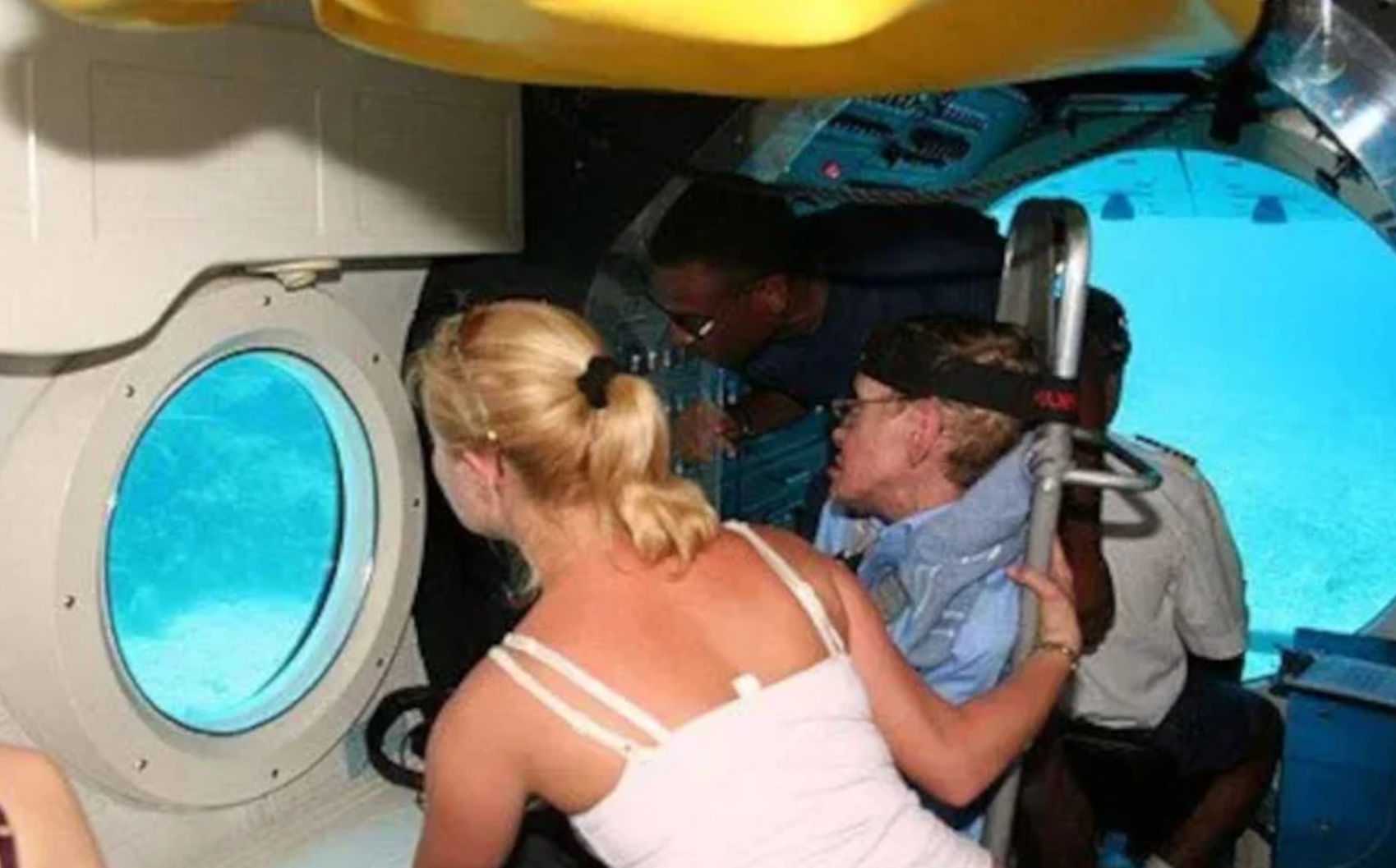 Οι φωτογραφίες από το συνέδριο απεικονίζουν επίσης τον Χόκινγκ σε ειδικά διαμορφωμένο βαθυσκάφος, προσαρμοσμένο ώστε να φιλοξενεί το αναπηρικό του αμαξίδιο, υπογραμμίζοντας τη συνεχιζόμενη ανάγκη του για εξειδικευμένη φροντίδα.
