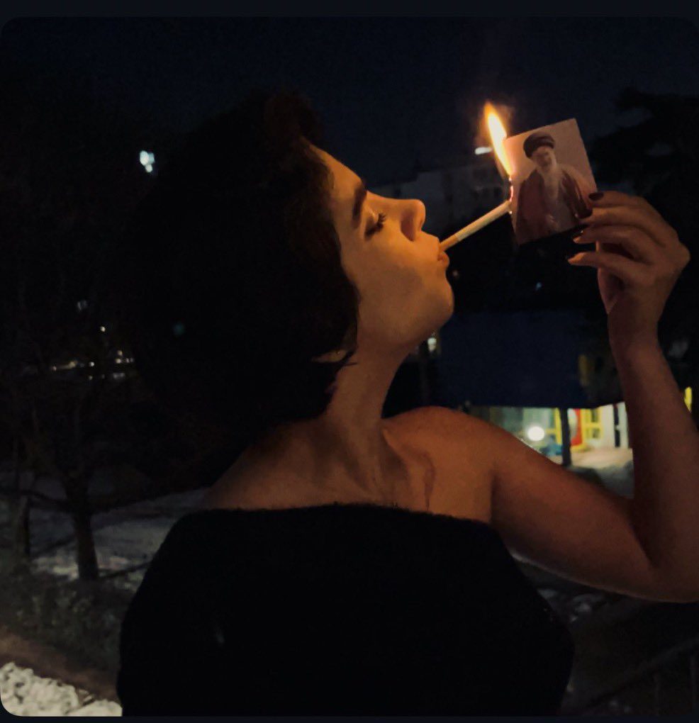 Η καύση φωτογραφιών του Χαμενεΐ θεωρείται σοβαρό ποινικό αδίκημα, καθώς ο ρόλος του ηγέτη είναι ταυτόχρονα πολιτικός και θρησκευτικός. Ταυτόχρονα, το κάπνισμα από γυναίκες σε δημόσιους χώρους παραμένει κοινωνικά ανεπίτρεπτο. Συνδυάζοντας τις δύο απαγορευμένες πράξεις, οι Ιρανές στέλνουν ένα ηχηρό μήνυμα αντίστασης στην κρατική εξουσία και στους κοινωνικούς περιορισμούς που τους έχουν επιβληθεί.
