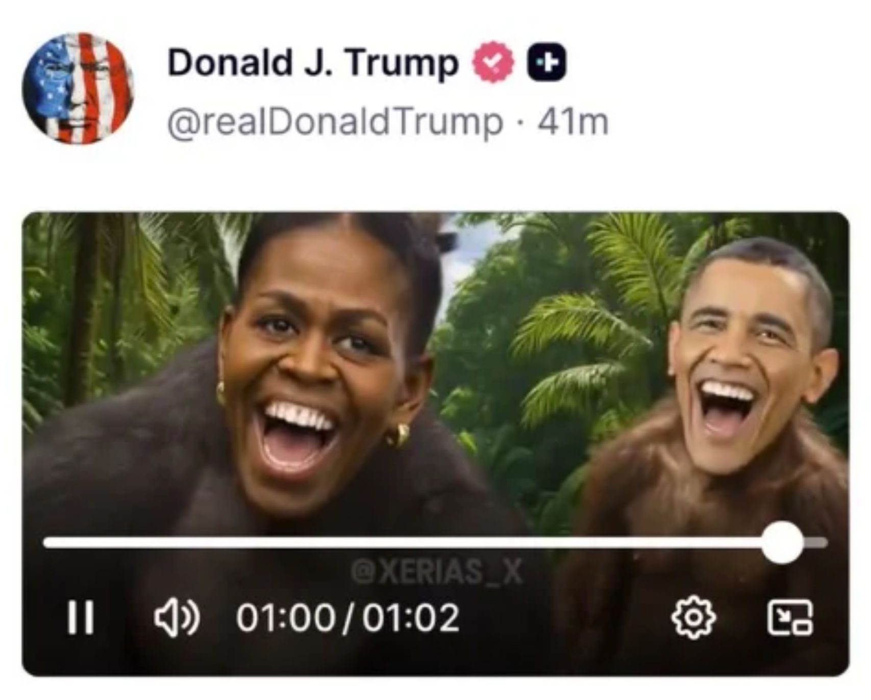 Σοκ: Ο Τραμπ ανέβασε βίντεο που δείχνει το ζεύγος Ομπάμα σαν πιθήκους
