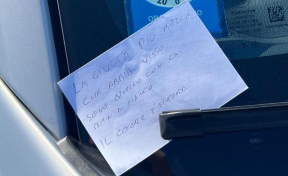 Όλα ξεκίνησαν όταν ο οδηγός της εντυπωσιακής Giulia επέστρεψε στο σημείο που είχε σταθμεύσει το αυτοκίνητό του και παρατήρησε ένα χαρτί κολλημένο στο παρμπρίζ. Όπως ήταν φυσικό, η πρώτη του σκέψη ήταν ότι επρόκειτο για κλήση λόγω παράνομου παρκαρίσματος.