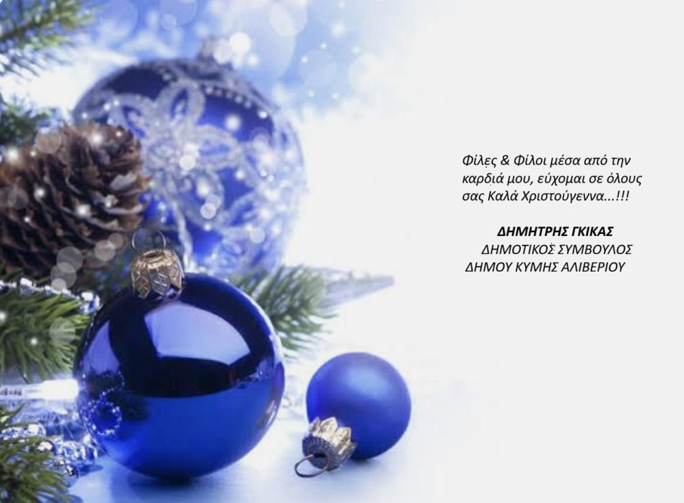 Ο Δημοτικός Σύμβουλος του Δήμου Κύμης Αλιβερίου, Δημήτρης Γκίκας σας εύχεται Καλές Γιορτές.