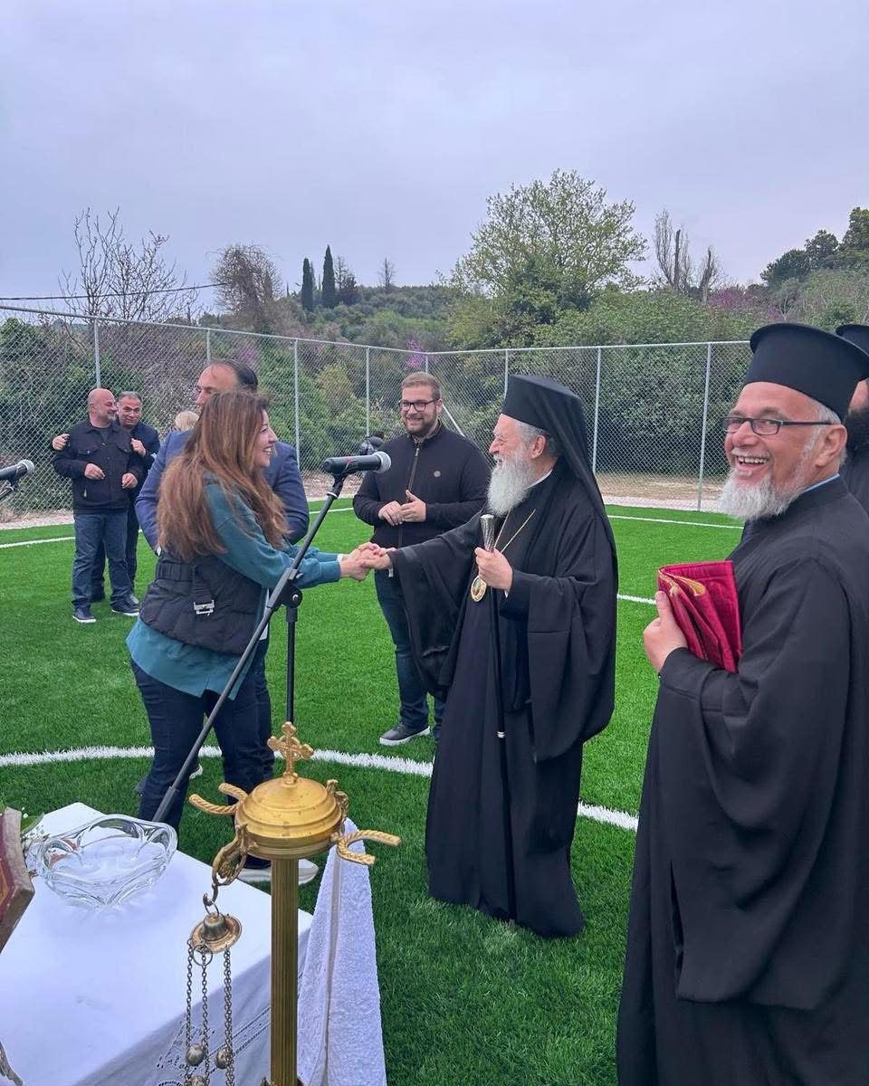 Στην τελετή χοροστάτησε ο Σεβασμιώτατος Μητροπολίτης Χαλκίδος, Ιστιαίας και Βορείων Σποράδων κ.κ. Χρυσόστομος, ο οποίος ευλόγησε το νέο αθλητικό έργο.