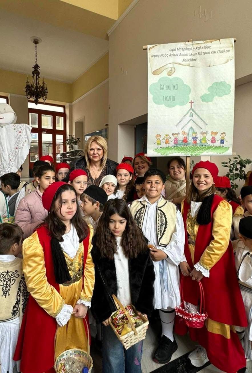 Η δήμαρχος Χαλκιδέων, Έλενα Βάκα, υποδέχθηκε με ιδιαίτερη χαρά τα παιδιά στο Δημαρχείο, τα αγκάλιασε με θερμότητα και εξήρε την όμορφη αυτή πρωτοβουλία που κρατά ζωντανά τα έθιμα και τις αξίες της παράδοσής μας.