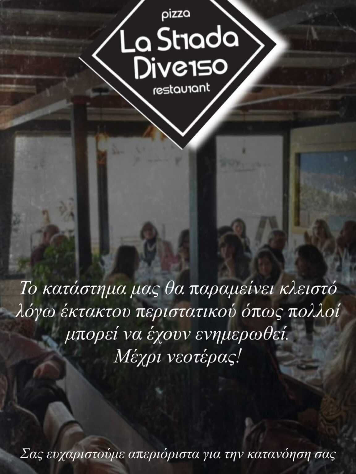 Οσο για τον ιδιοκτήτη του κ. Βασίλη Χαρίση σίγουρα θα λειτουργήσει ως superman και θα φροντίσει να ανοίξει σύντομα το Lastrada Diverso γιατί οι πελάτες του το περιμένουν πως και πως!