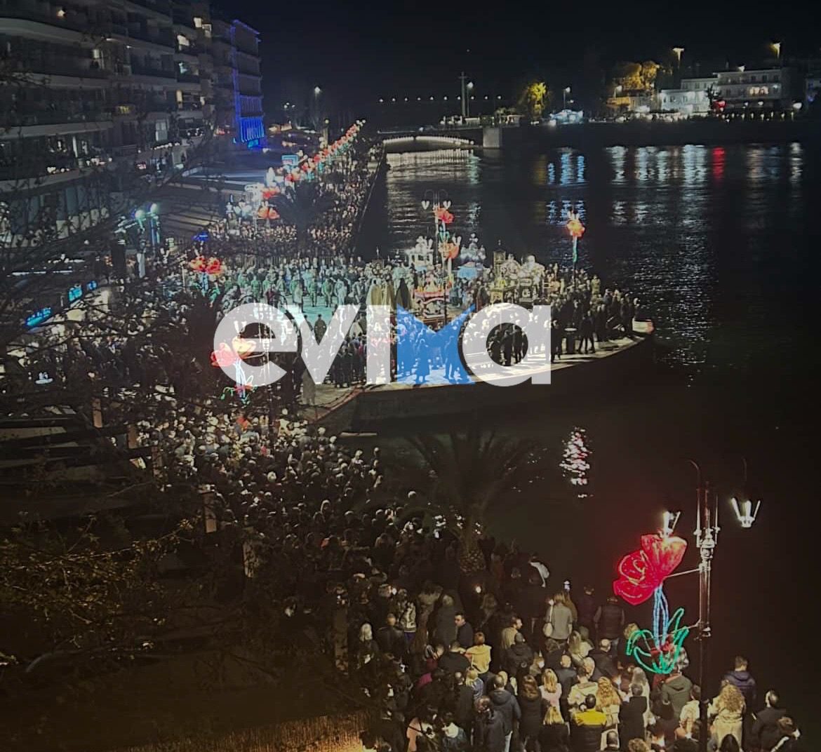 Σε ατμόσφαιρα βαθιάς κατάνυξης και με τη συμμετοχή πλήθους πιστών πραγματοποιήθηκε το βράδυ της Μεγάλης Παρασκευής η καθιερωμένη συνάντηση των επτά Επιταφίων στη Χαλκίδα, στο σημείο «στρογγυλό» της παραλίας.