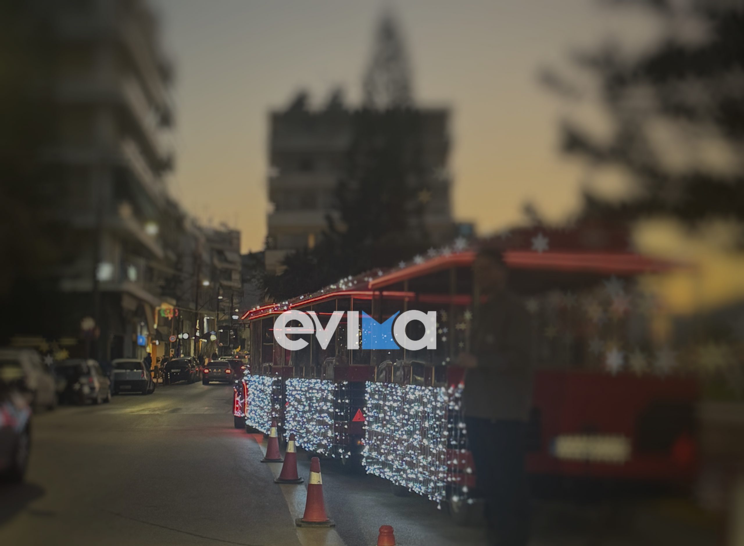 Χριστούγεννα στη Χαλκίδα: Το τουριστικό τρενάκι στολίστηκε με χιλιάδες λαμπιόνια και μαγεύει την πόλη (βίντεο)