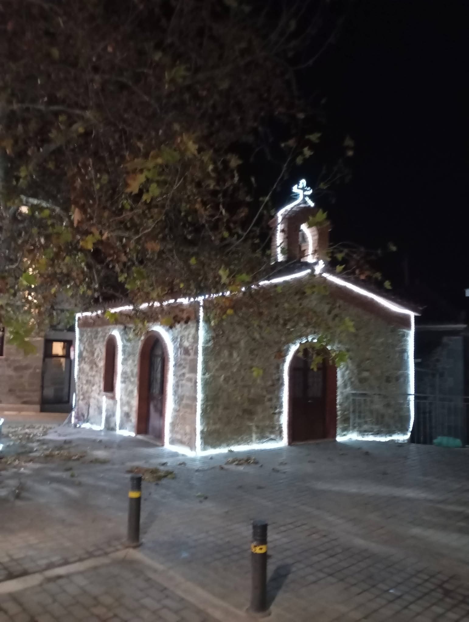 Και δεν παρέλειψαν το μικρό εκκλησάκι κάτω από την πλατεία, ένα ταπεινό αλλά ιδιαίτερα αγαπημένο σημείο, που φέτος λάμπει περισσότερο από ποτέ.