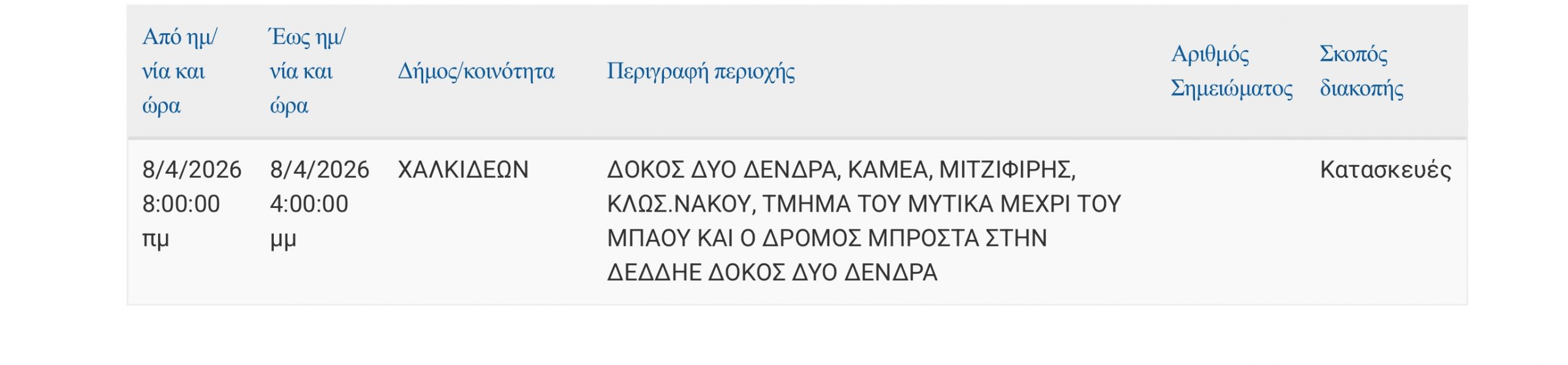 Που θα γίνει σήμερα προγραμματισμένη διακοπή ρεύματος στη Χαλκίδα