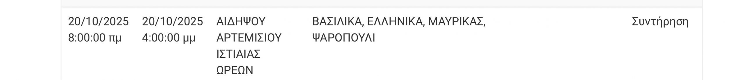 Διακοπή ρεύματος σήμερα σε αυτές τις περιοχές της Βόρειας Εύβοιας
