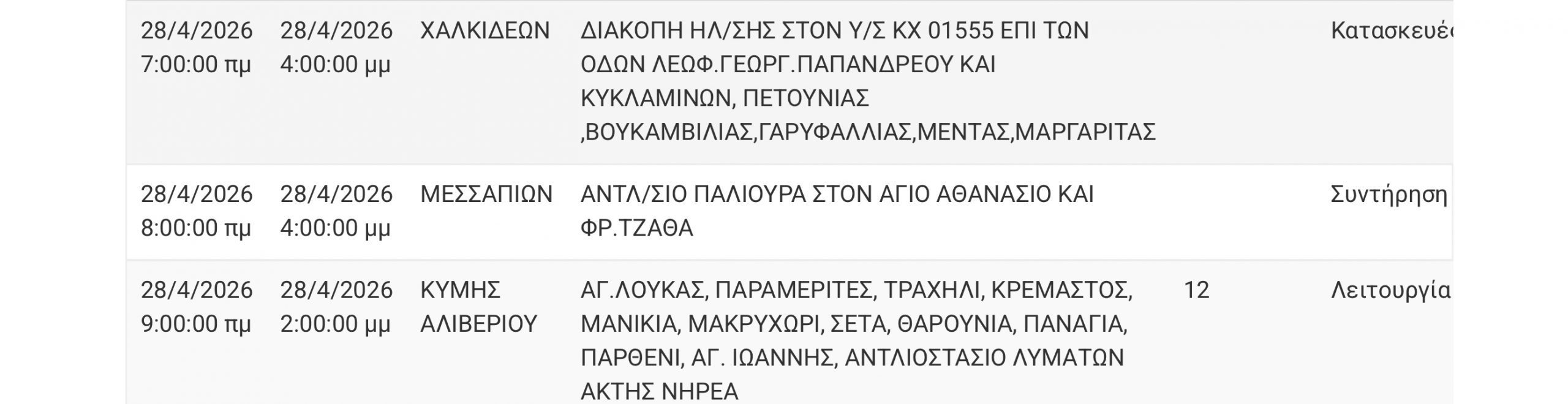 Διακοπή ρεύματος σήμερα Τρίτη (28/4) σε αυτές τις περιοχές της Εύβοιας