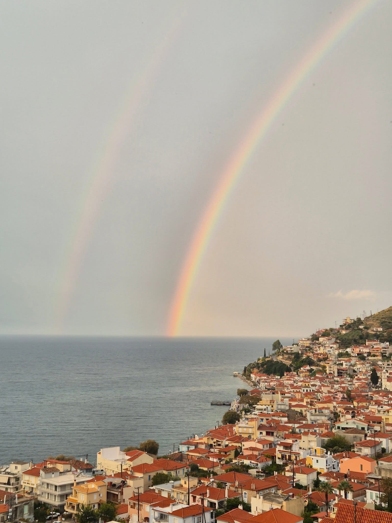 Εντυπωσιακό διπλό ουράνιο τόξο φώτισε την Εύβοια από άκρη σε άκρη! (εικόνες)