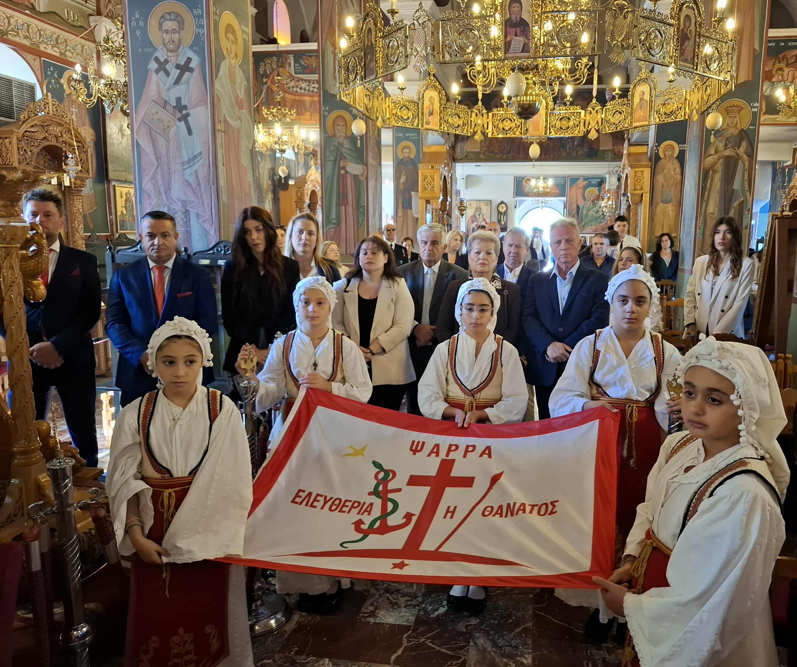 Στην Δοξολογία παρέστησαν μεταξύ των πιστών ο Αντιπεριφερειάρχης Παιδείας κ. Αναστάσιος Βελισαρίου ο Δήμαρχος Ερέτριας κ. Νικόλαος Γουρνής οι Αντιδήμαρχοι κ. Βούλα Αμερικάνου κ. Χρήστος Διονυσόπουλος κ. Λάμπρος Παπάς η Πρόεδρος του Δημοτικού Συμβουλίου κ. Γεωργία Πάττα ο Πρόεδρος της Δημοτικής Κοινότητος Ερέτριας κ. Χρήστος Νερούτσος η Σύμβουλος της Δημοτικής Κοινότητος Ερέτριας κ. Ελισάβετ Πασχαλίδου η Δημοτική Σύμβουλος κ. Μαρία Χόνδρου η Διοικήτης του Αστυνομικού Τμήματος Ερέτριας Αστυνόμος Β’ κ. Αικατερίνη Μπουκουβάλα ο Υποδιοικητής του Λιμεναρχείου Ερέτριας Σημαιοφόρος Λ.Σ κ. Κωνσταντίνος Στεργίου και τα μέλη του Εθελοντικού Σώματος Δασοπροστασίας Διάσωσης Ευβοίας του Εθελοντικού Σταθμού Ερέτριας.