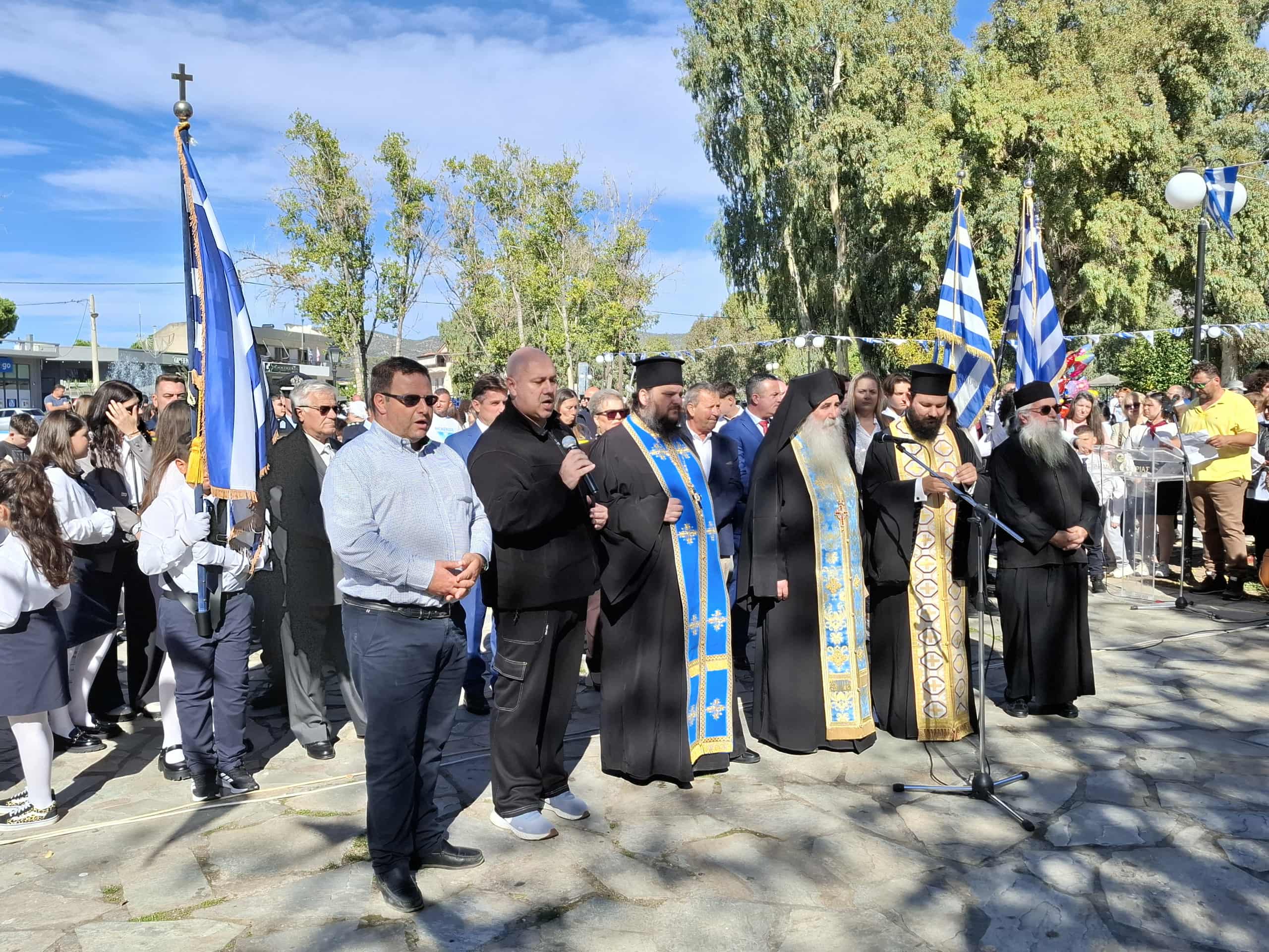 Στην ομιλία του ο π. Αθανάσιος αναφέρθηκε ότι σήμερα έχουμε διπλή καί μεγάλη Έορτή έκκλησιαστική καί έθνική διότι η Έκκλησία μας τιμά τό όραμα τής Άγίας Σκέπης τής Ύπεραγίας Θεοτόκου άπό τόν Όσιο Άνδρέα τού διά Χριστόν Σαλού, στίς 28 Όκτωβρίου μαζί μέ τήν Εθνική Επέτειο τού ΟΧΙ, καί τού ένδοξου έπους τού ’40, όπου έορτάζεται μαζί καί ή άπελευθέρωση τής πατρίδας μας, τής όμορφης Έλλάδας, άπό τόν Ίταλογερμανικό ζυγό.