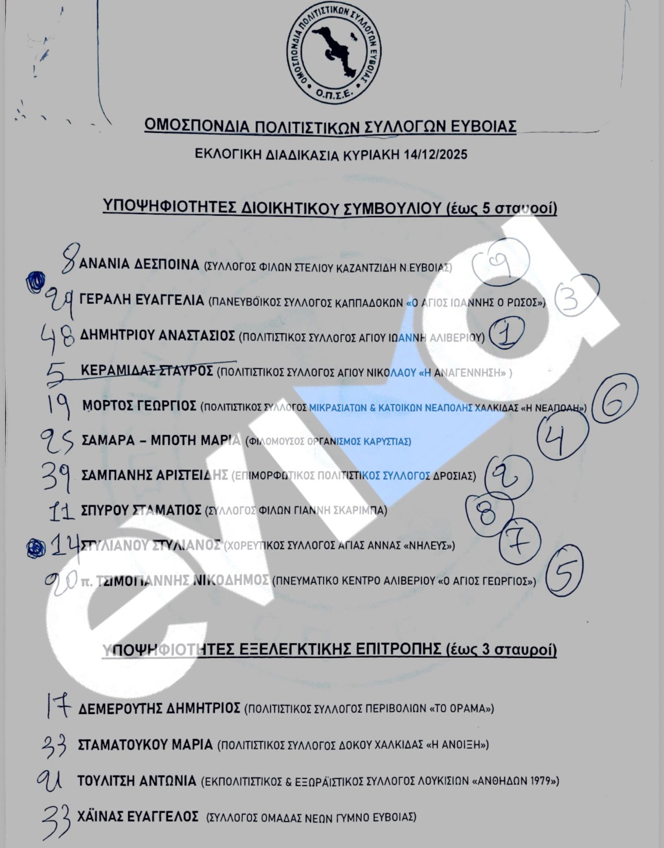 Δείτε αναλυτικά όλα τα ονόματα που εκλέγονται στο νέο διοικητικό συμβούλιο της οπσεΟλοκληρώθηκαν πριν από λίγο οι εκλογές της Ομοσπονδίας Πολιτιστικών Συλλόγων Εύβοιας.