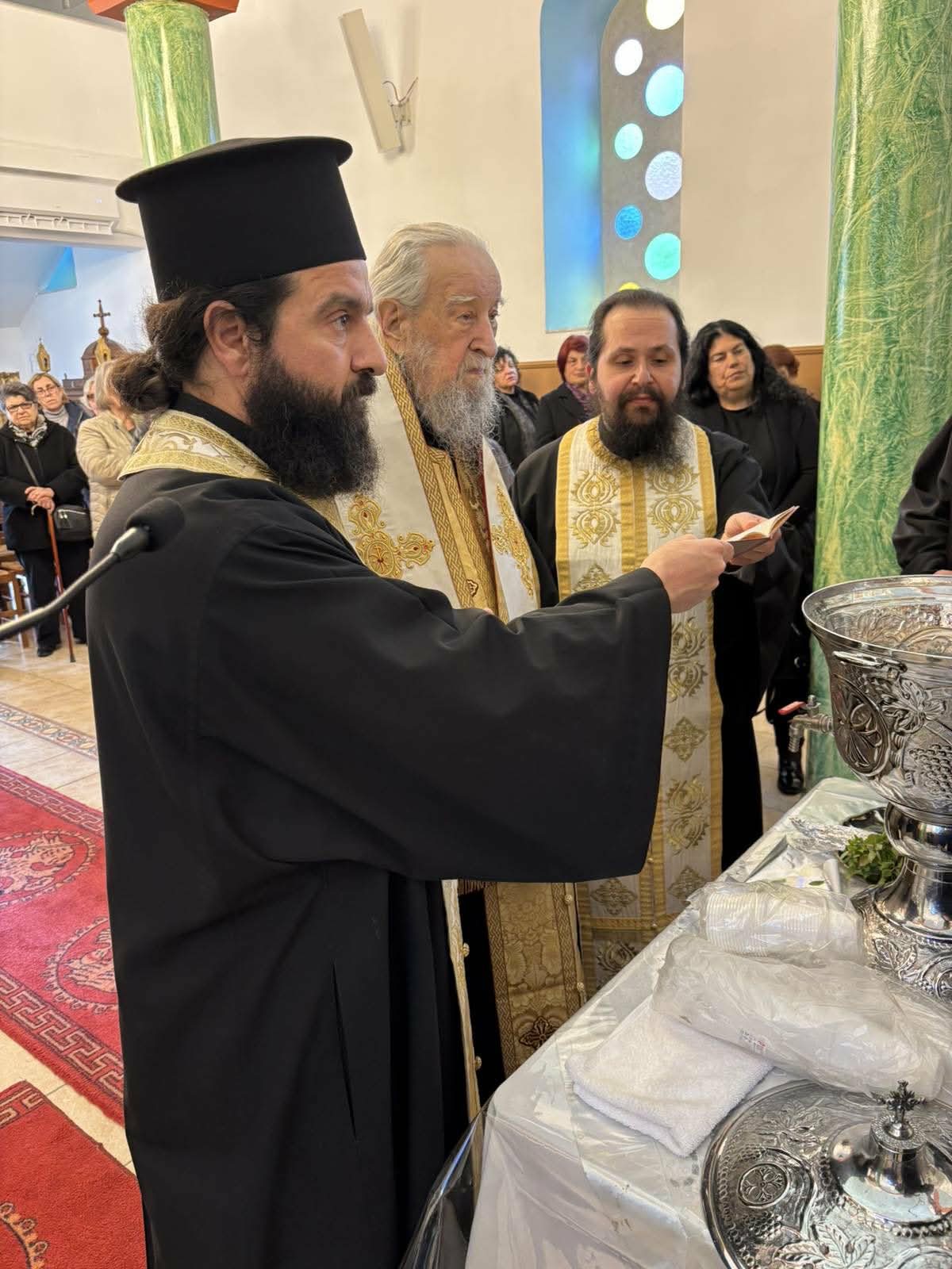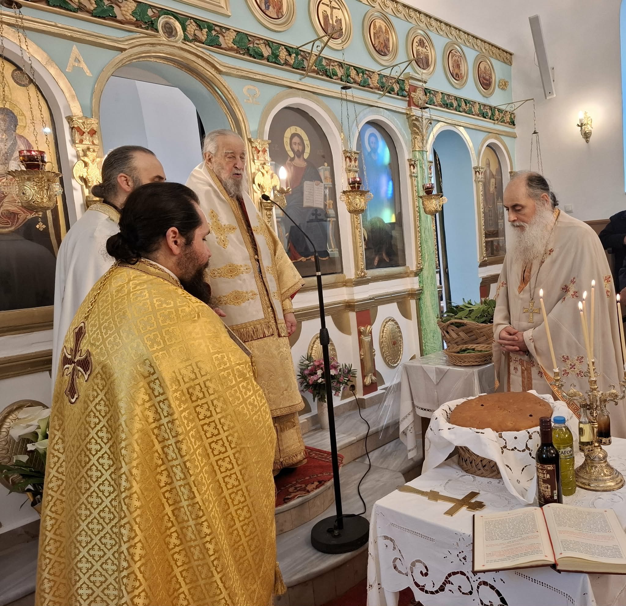 Τον Σεβσαμιώτατο Μητροπολίτη κ. Σεραφείμ πλαισίωσαν οι Πανοσ Αρχιμ Νικόδημος Πόγκας Πρωτοσύγκελλος της Ιεράς Μητροπόλεως Αρσένιος Τριανταφύλλου εφημέριος του ιερού ναού και οι Πρωτοπρ Γεώργιος Γιαννούλης εφημέριος Αγίου Λουκά Αλιβερίου Ευάγγελος Βογιατζής εφημέριος Αγίου Ιωάννου Αλιβερίου και Στυλιανός Πεταχτής εφημέριος Καδδίου.
