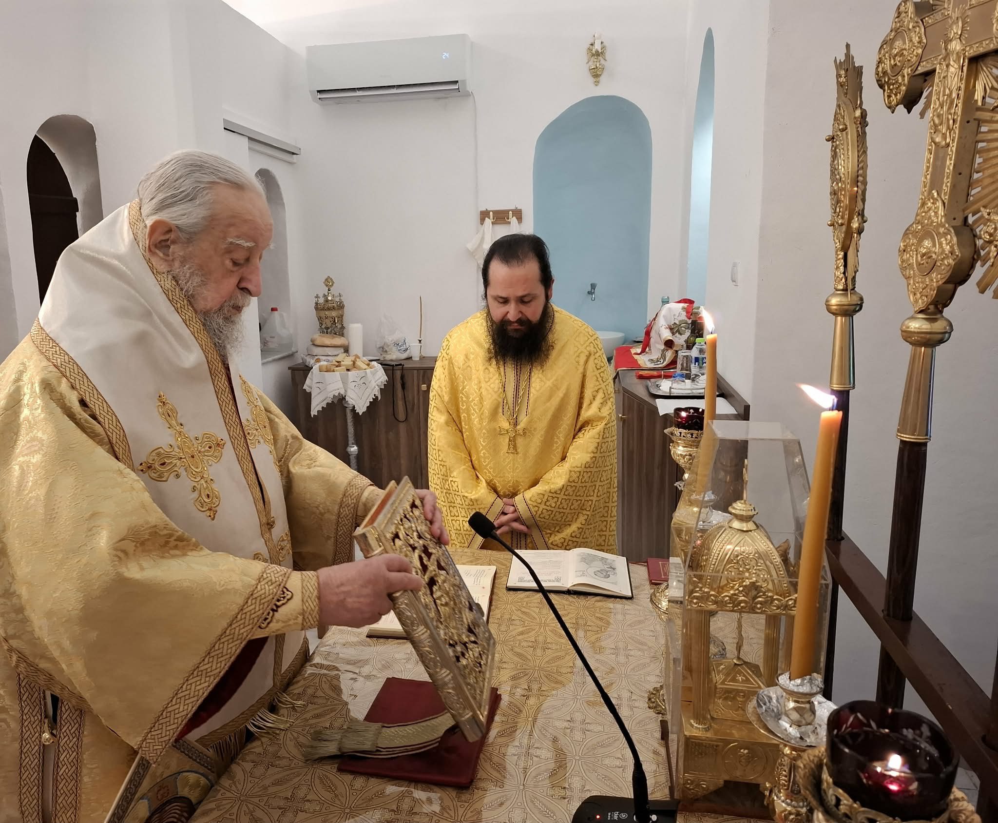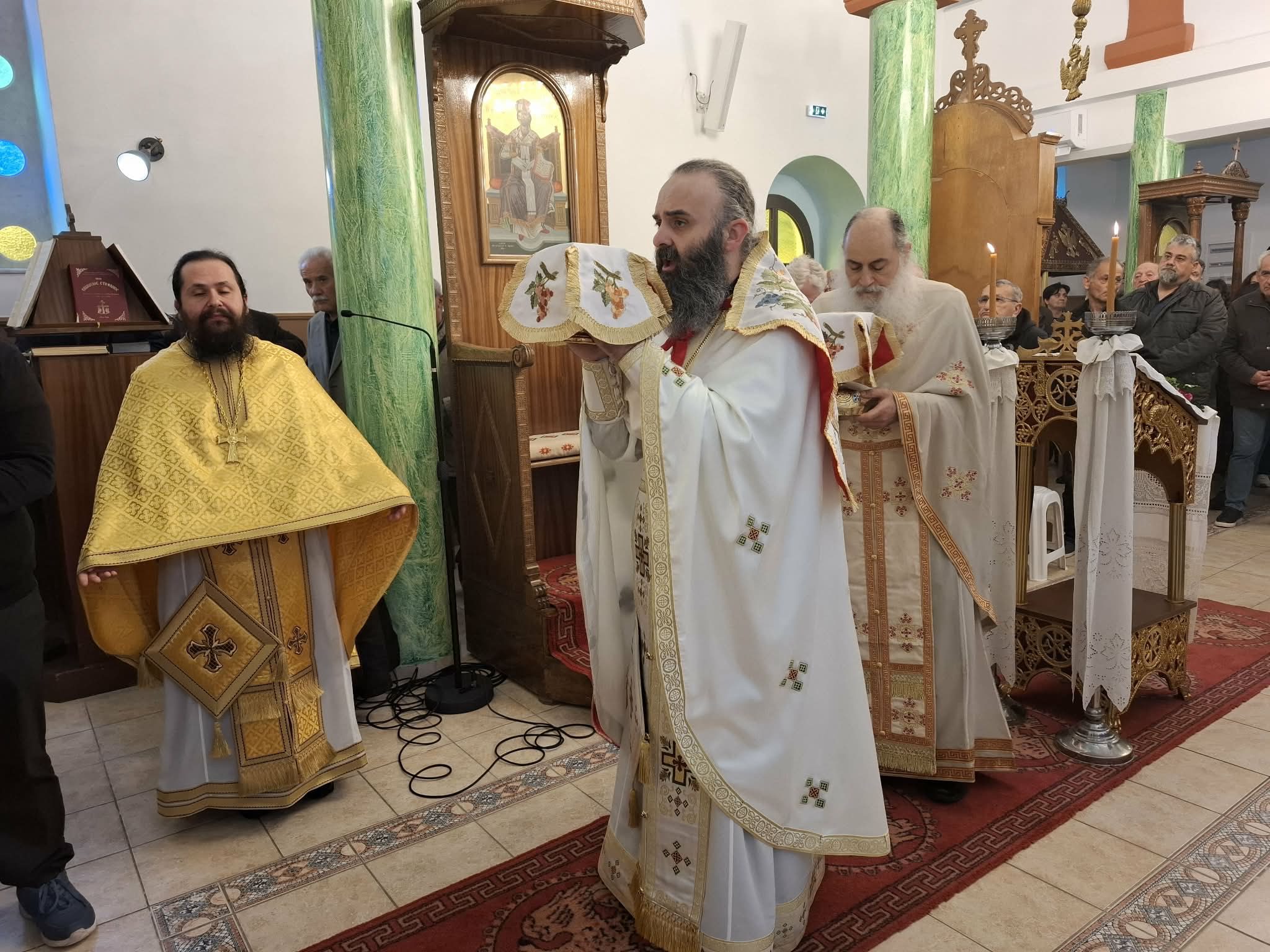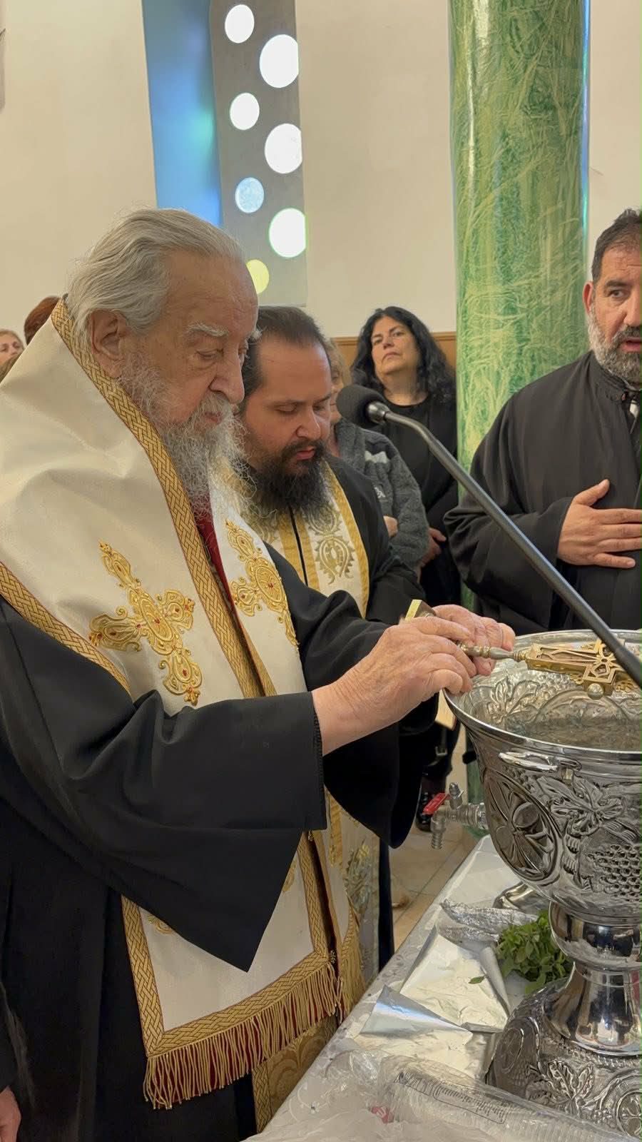 Την επόμενη ημέρα της Κυριακής των Βαΐων στον προαναφερθέντα ιερό ναό ο Σεβασμιώτατος κ. Σεραφείμ τέλεσε την Αρχιερατική Θεία Λειτουργία πλασιούμενος απο τους Πανοσ Αρχιμ Αρσένιο Τριανταφύλου εφημέριο του ιερού ναού Αντώνιο Αγγελόπουλο και Πρόδρομο Γκέγκε