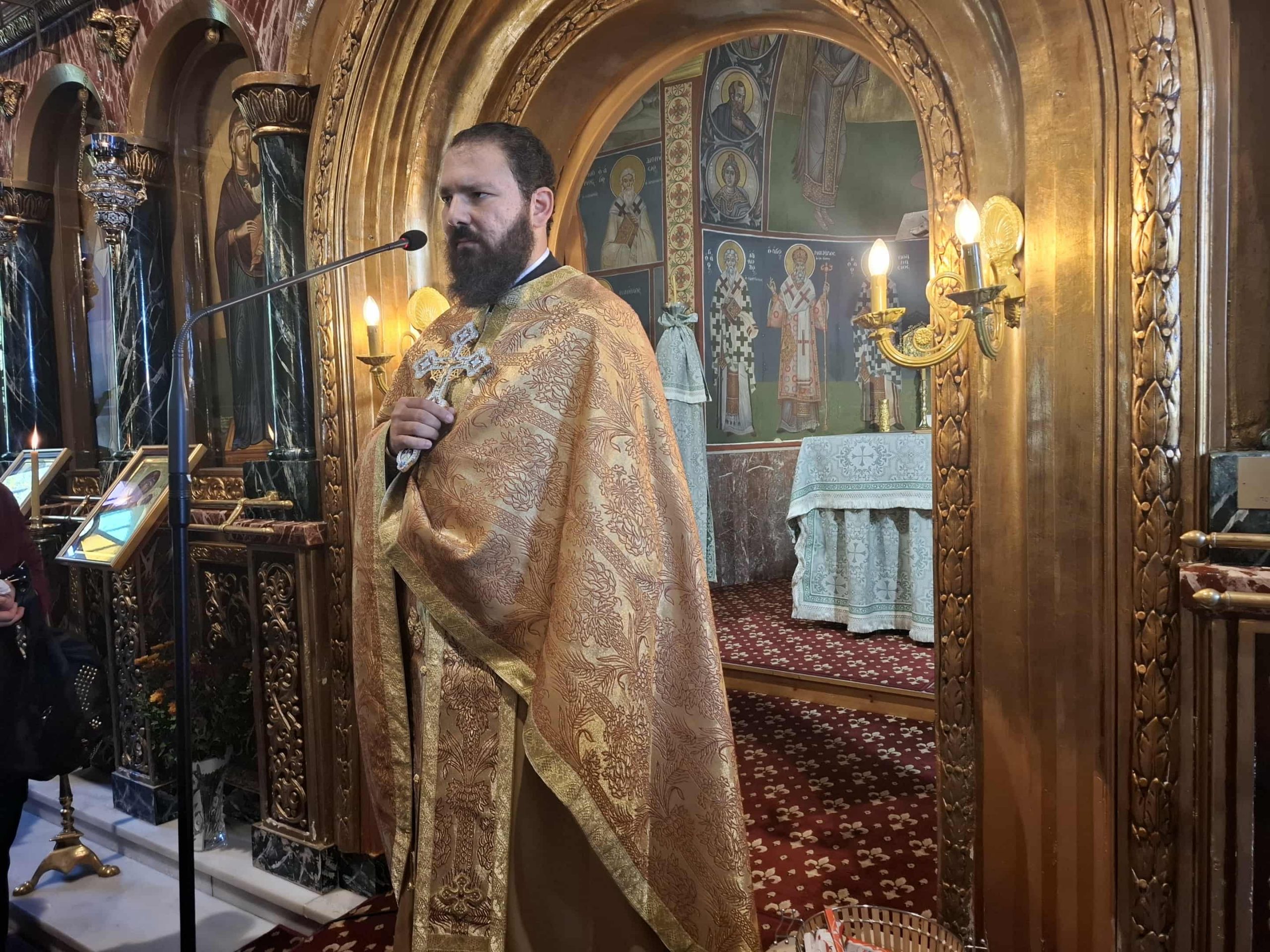 Επίσης στο αναλόγιο έψαλαν ο Πρωτοψάλτης του ιερού ναού κ. Ευάγγελος Πολύχρονος με τον εορτάζοντα Ιεροψάλτη του ιερού ναού κ. Δημήτριο Πετρογιάννη και τον Αναγνώστη του ιερού ναού Ανάργυρο Αργύρη.