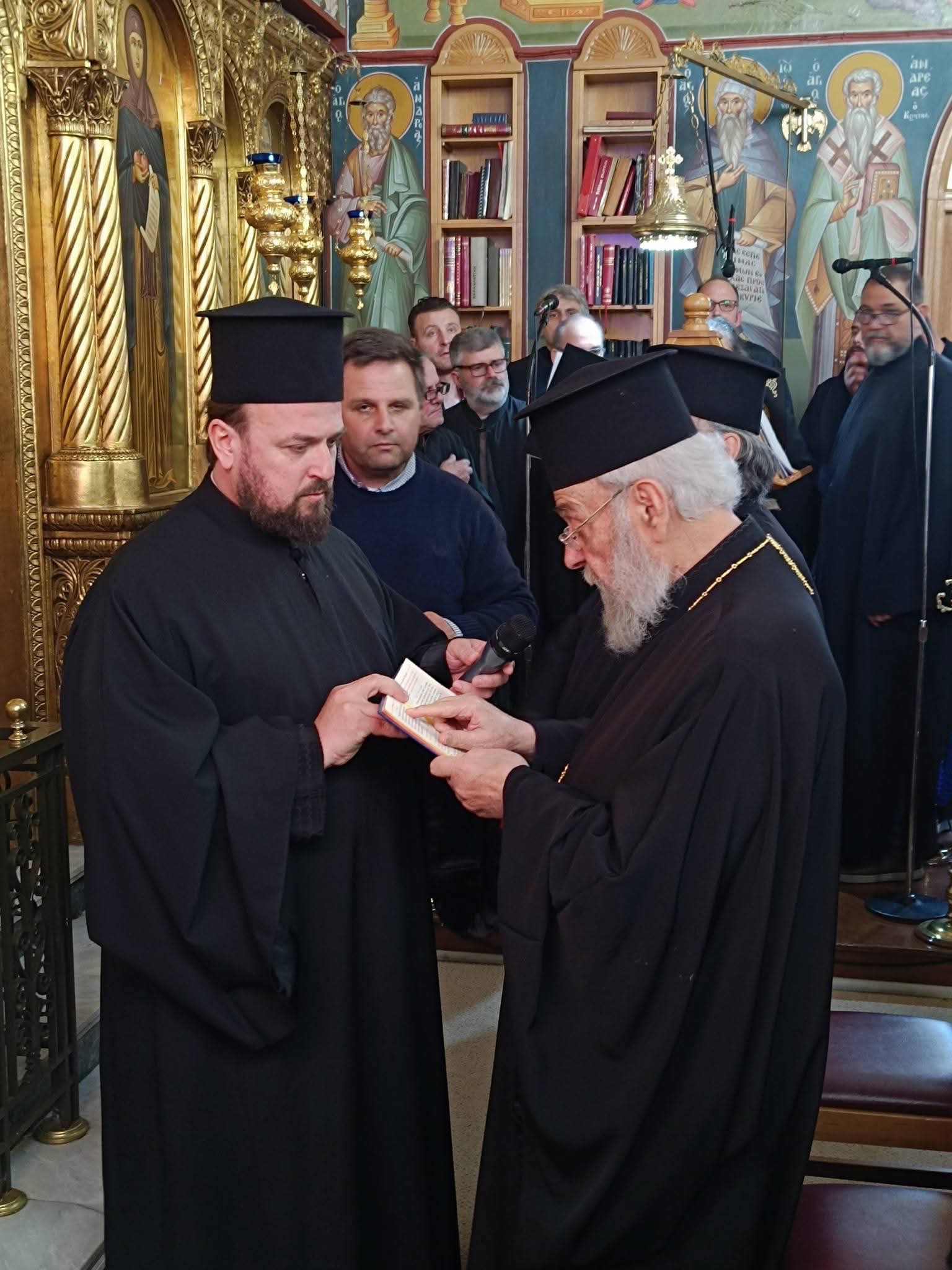 Στην συνέχεια ο Σεβασμιώτατος κ. Σεραφείμ χειροθέτησε σε Αναγνώστες τους κ. Χρύσανθο Βαλασιάδη κ. Ιωάννη Αλμυριώτη κ. Ζήση – Πέτρο Μέρτζανακη κ. Παναγιώτη Μπάστα κ. Κωνσταντίνο Σεϊμένη κ. Γεώργιο Μαγκανιάρη μέλη της χορωδίας της Σχολής Βυζαντινής Μουσικής της Ιεράς Μητροπόλεως Καρυστίας και Σκύρου.