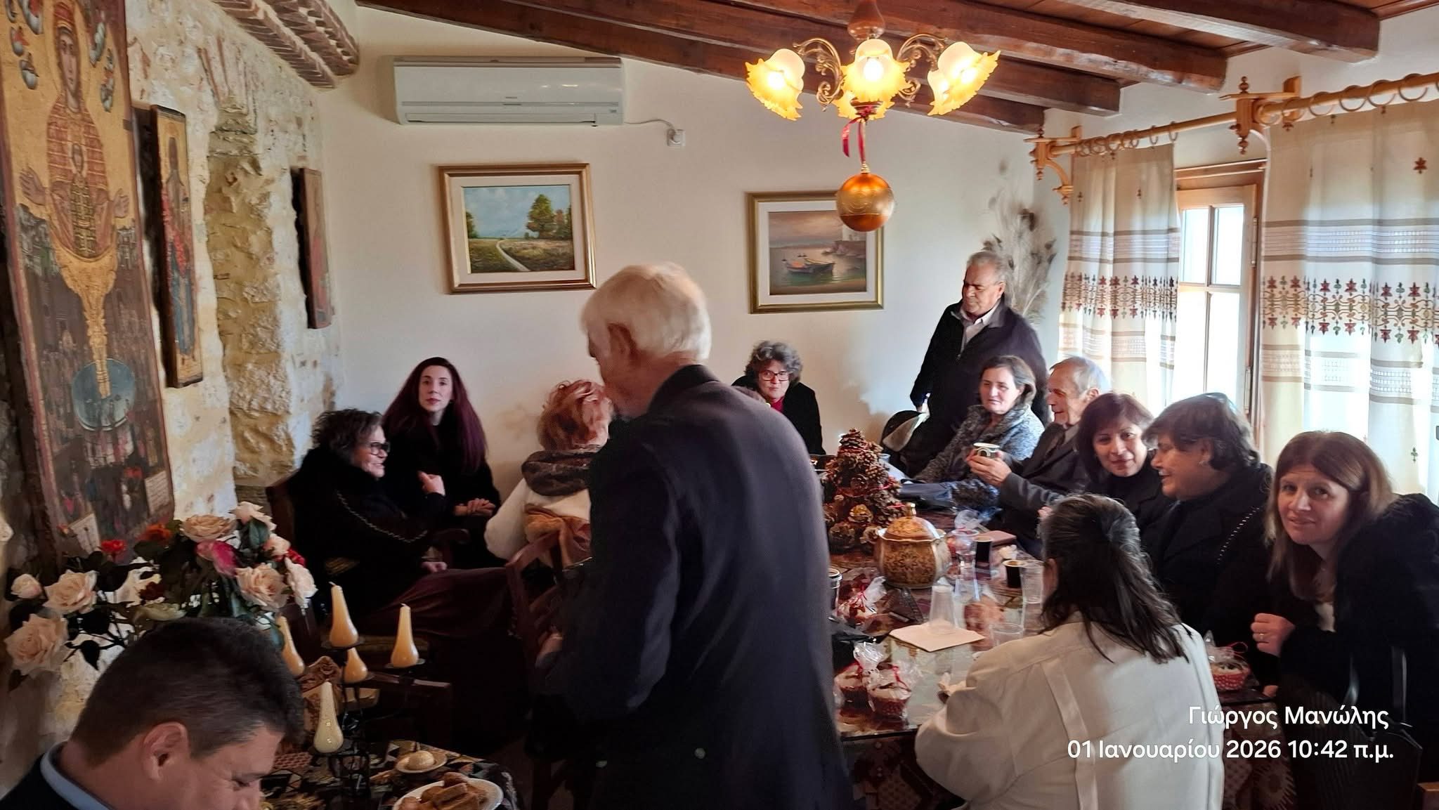 Με το πέρας της επίσημης Δοξολογίας, ο πατήρ Νικόδημος, έκοψε την καθιερωμένη βασιλόπιτα εντός του Ιερού Ναού, προσφέροντας κομμάτι και στον Δήμαρχο Κύμης-Αλιβερίου, κ. Μπαράκο Νικόλαο, ο οποίος απηύθυνε σύντομο χαιρετισμό.