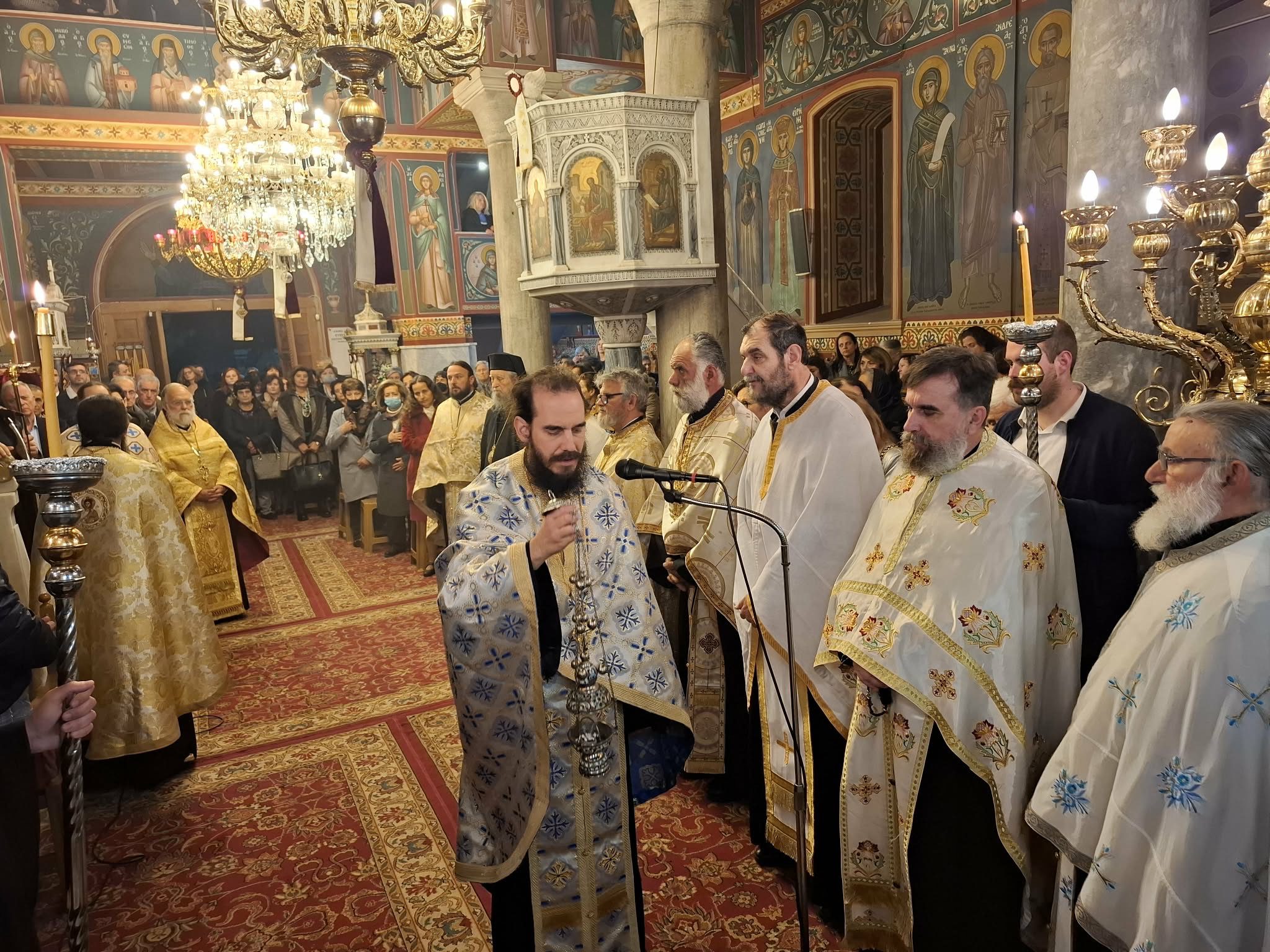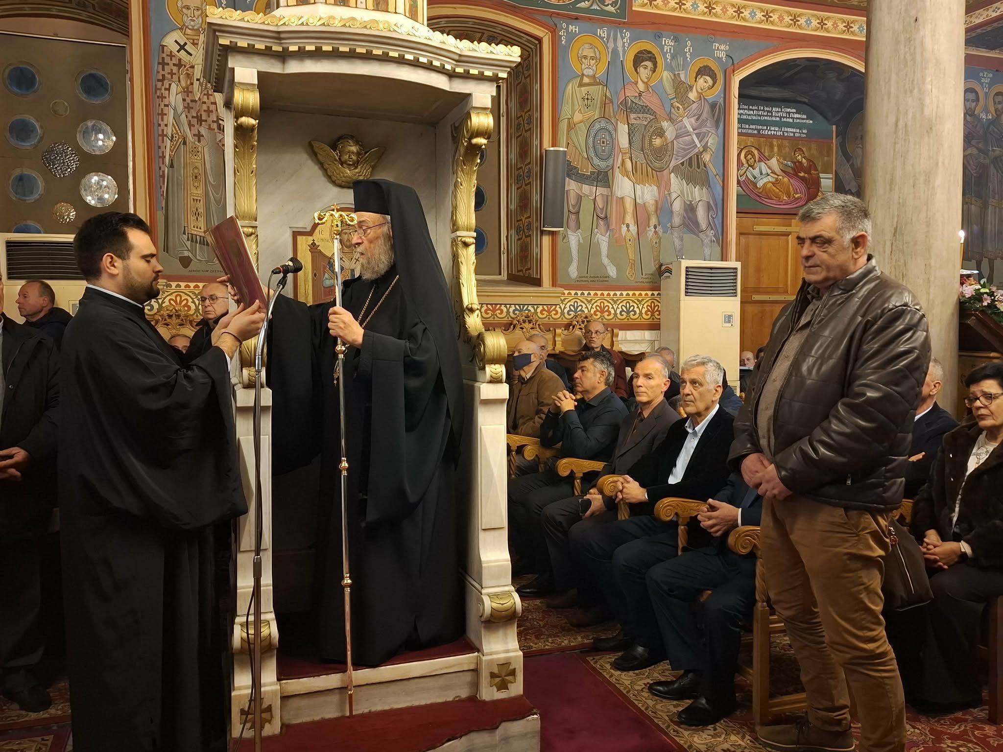 Μετά το πέρας του εσπερινού, στην αίθουσα του πνευματικού κέντρο του ιερού ναού, ο Σεβασμιώτατος Μητροπολίτης κ. Σεραφείμ ευλόγησε την Αγιοβασιλειόπιτα και ευχήθηκε προς τους συμμετέχοντες.