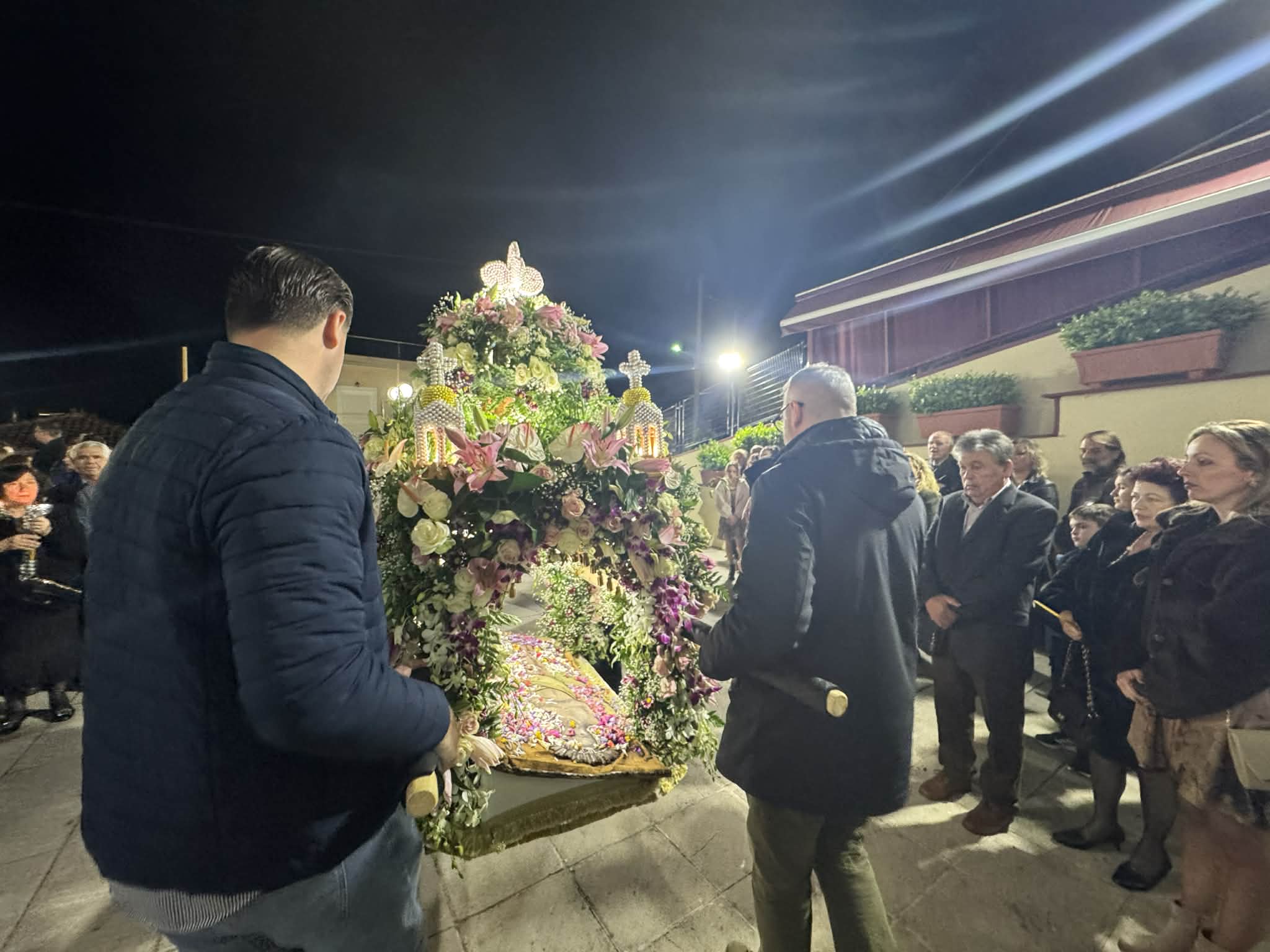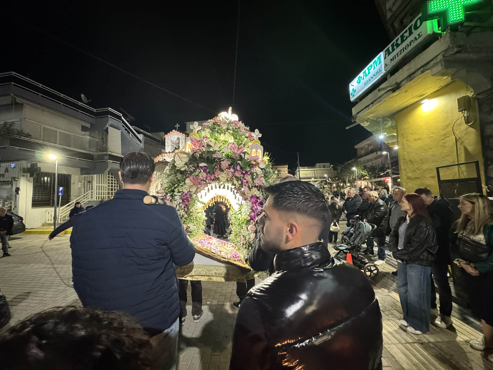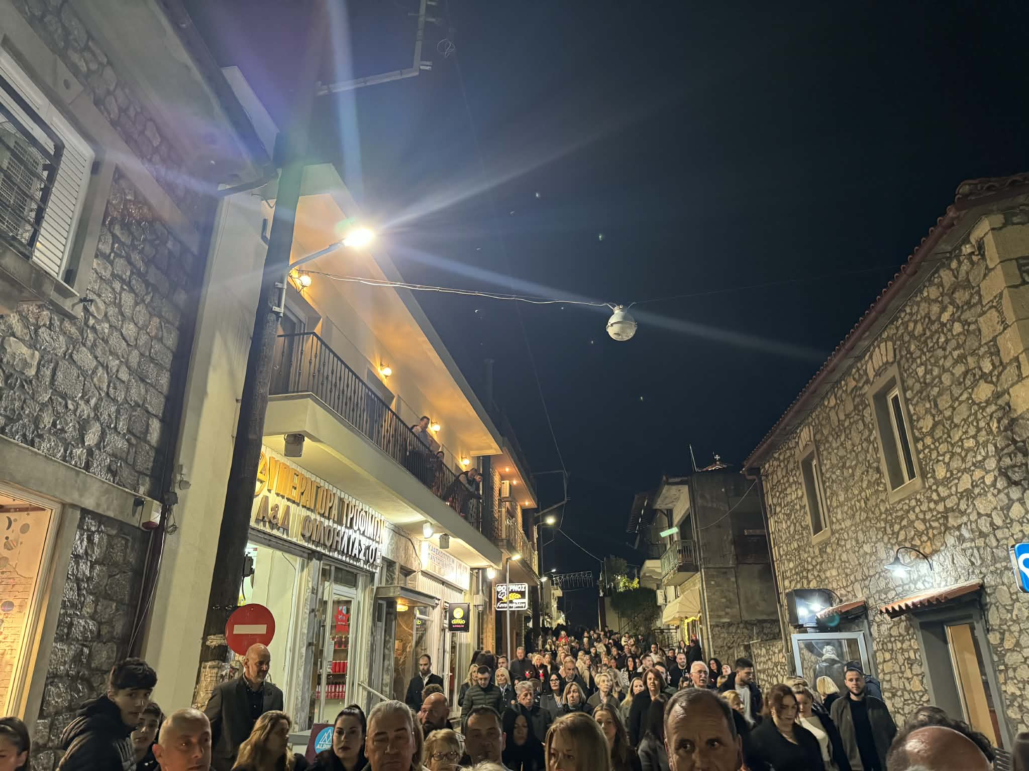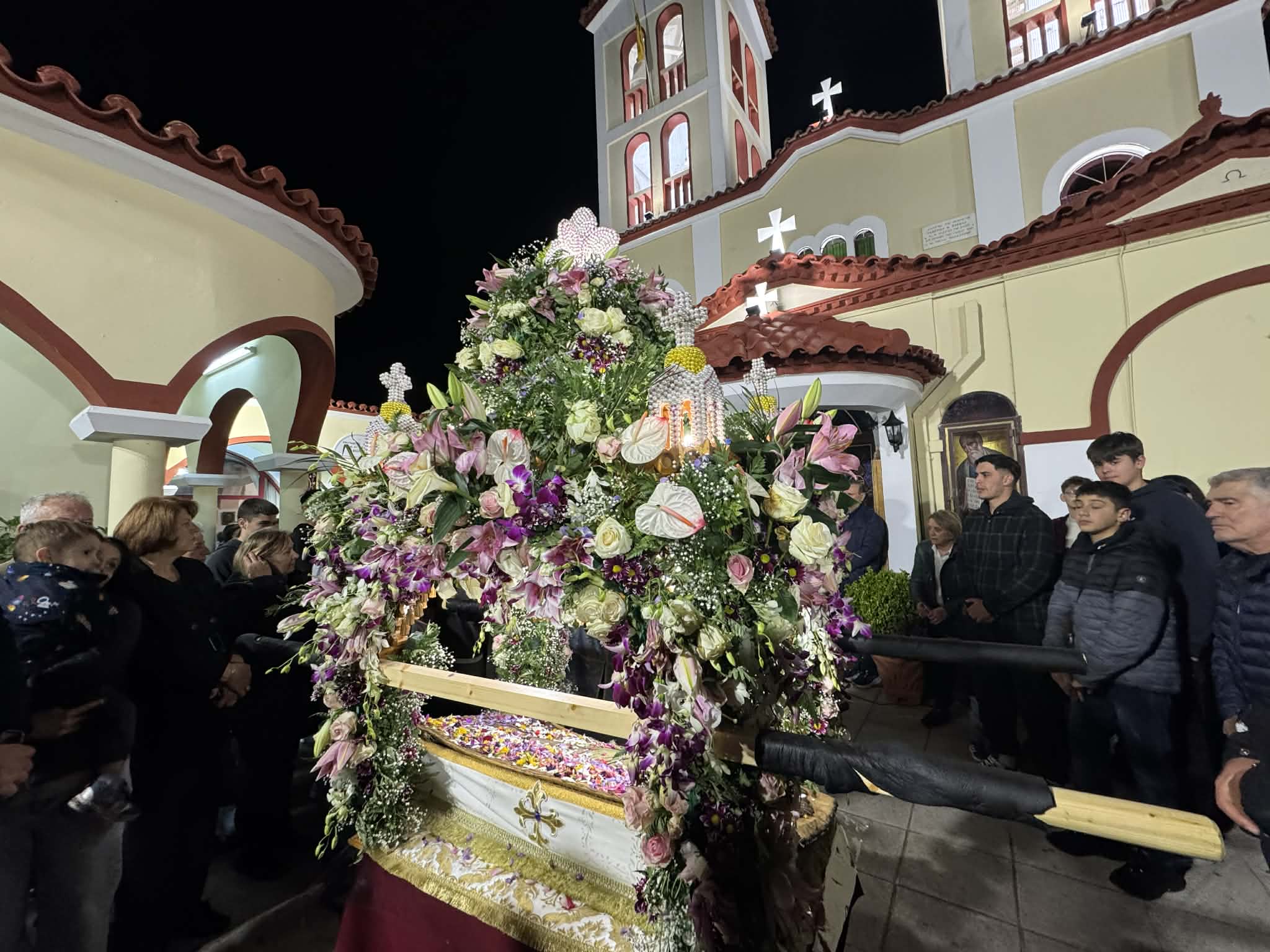 Ακολούθησε η περιφορά του Επιταφίου στους δρόμους της πόλης, με τους πιστούς να συνοδεύουν με ευλάβεια, κρατώντας κεριά και ψάλλοντας. Η πομπή διέσχισε κεντρικά σημεία του Μαντουδίου, δημιουργώντας μια ιδιαίτερα φορτισμένη πνευματικά ατμόσφαιρα.