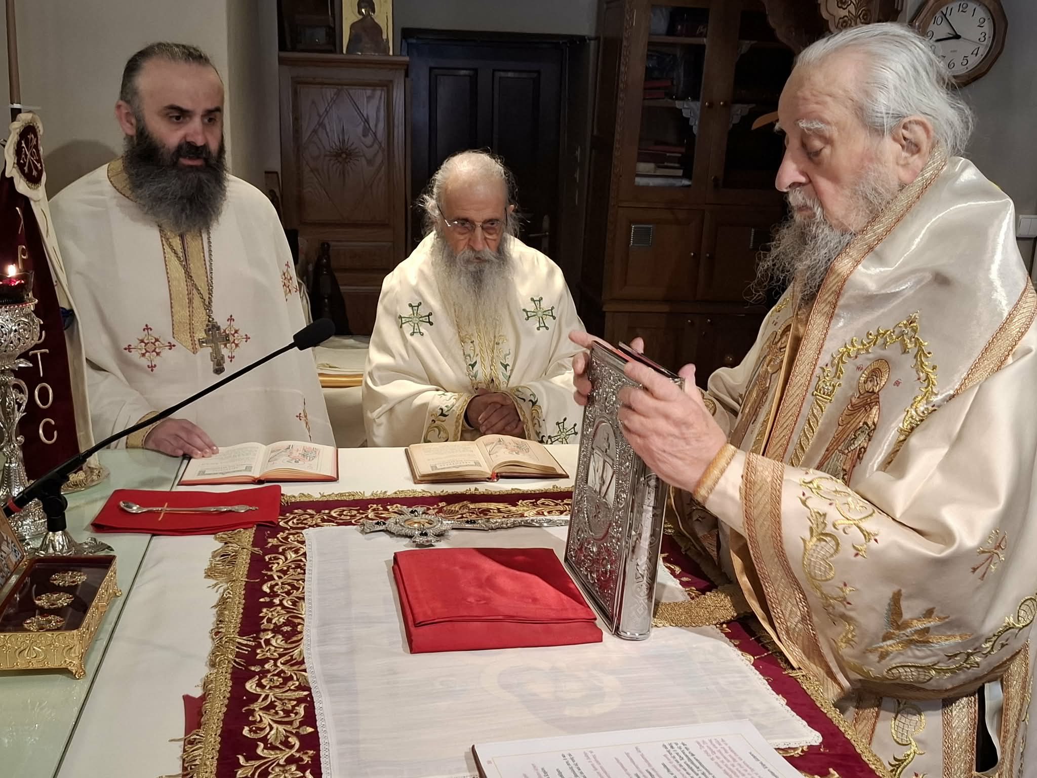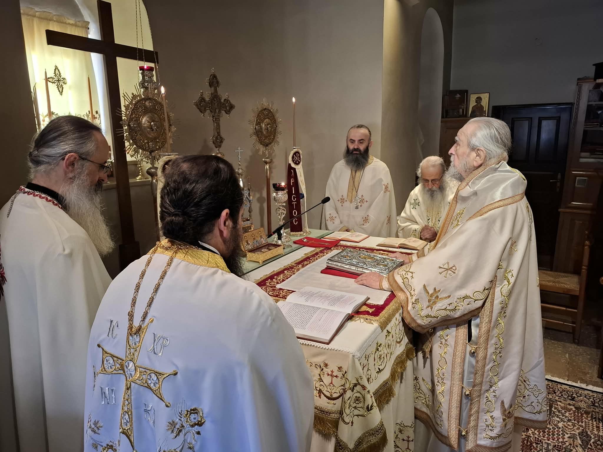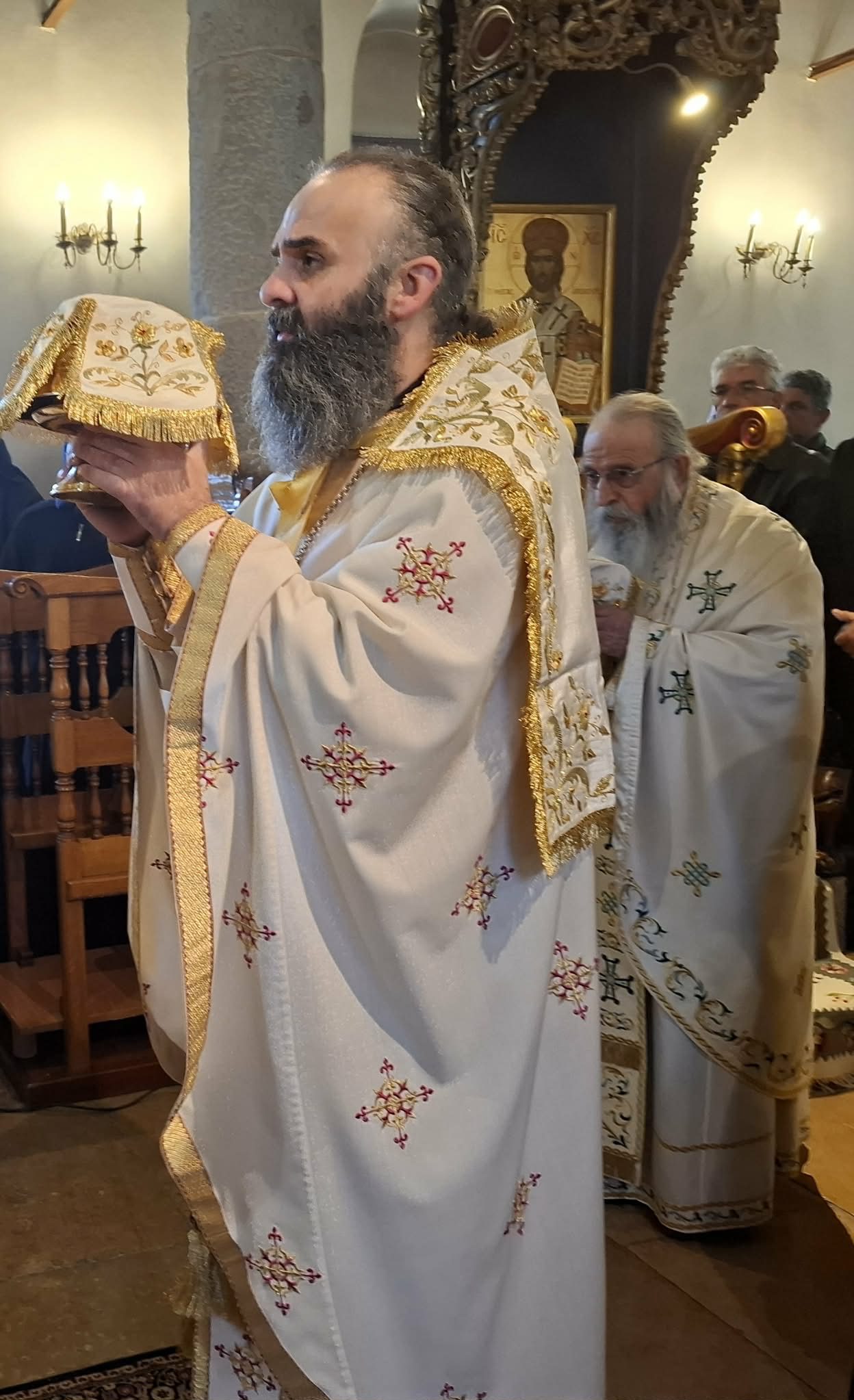 Μετά το πέρας της λειτουργικής συνάξεως ο Σεβασμιώτατος Μητροπολίτης κ. Σεραφείμ ευχήθηκε στον εορτάζοντα Γέροντα της Ιεράς Μονής Πανοσ Αρχιμ Νικόδημο Γιαννακόπουλο για την ονομαστική εορτή του ο οποίος άγει τα ονομαστήρια του με την ευκαιρία της σημερινής εορτής των Μυροφόρων Γυναικών και του νυκτερινού μαθητού κηδευτού και μυροφόρου Νικοδήμου  και ταυτόχρονα αναφέρθηκε στο συγγραφικό έργο  στην λειτουργική διακονία και  πνευματική  καθοδήγηση του π. Νικοδήμου  την οποία  επιτελεί στην Ιερά Μητρόπολη  και ιδιαίτερα  ως πνευματικός ταύτης  της ιεράς μονής.