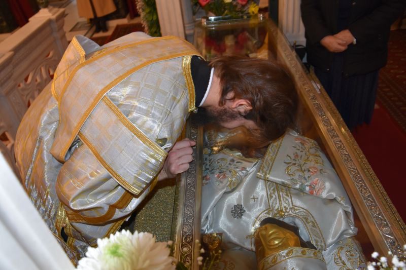 Εκκλησιάσθηκαν ο εφησυχάζων Μητροπολίτης κ. Ιωσήφ, σύσσωμοι οι ωφελούμενοι φοιτητές του Θεολογικού Φοιτητικού Οικοτροφείου της Αποστολικής Διακονίας και πλήθος προσκυνητών, ο οποίοι, παρά τον εργάσιμο χαρακτήρα της ημέρας, προσέρχονταν από πολλά μέρη της Πατρίδος μας και του Εξωτερικού να αποτίσουν τιμή στον όσιο Ιωάννη.