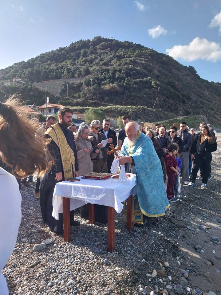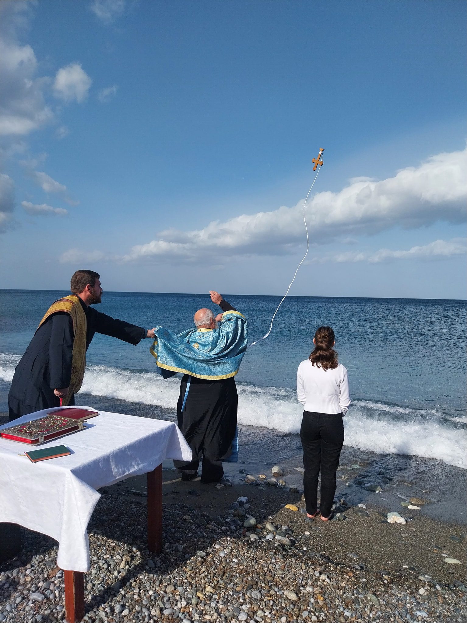 Ανήμερα των Θεοφανείων, μέσα σε κλίμα κατάνυξης και συγκίνησης, ο πατήρ Βασίλειος και ο πατήρ Αθανάσιος τέλεσαν τον Καθαγιασμό των Υδάτων στην όμορφη παραλία του Μετοχίου. Παρά το κρύο, η στιγμή ήταν ιδιαίτερα συγκινητική, καθώς η Μαρία Συκά ήταν η μοναδική που βούτηξε στα αγιασμένα νερά και έπιασε τον Τίμιο Σταυρό, αποσπώντας το θερμό χειροκρότημα και τις ευχές όλων των παρευρισκομένων.