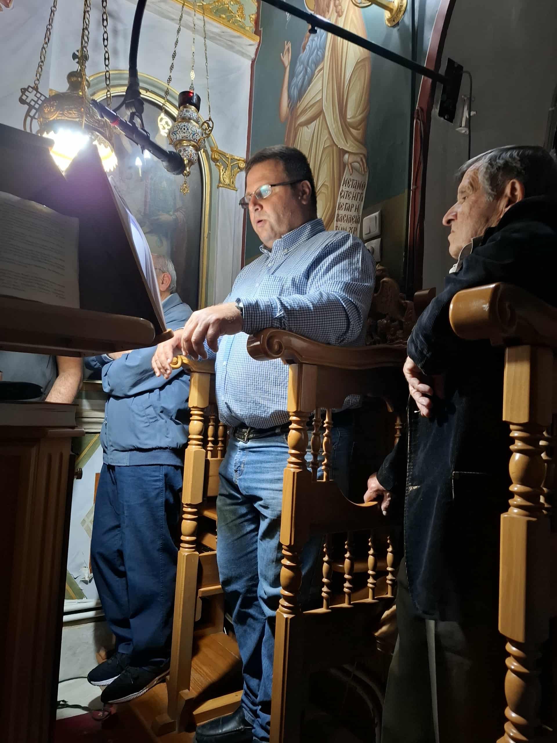 Στην αγρυπνία συμμετείχαν οι πιστοί της ενορίας καθώς επίσης στα αναλόγια του ιερού ναού έψαλαν ο Ιεροψάλτης Ιερού Ναού Αγίου Νικολάου Ερέτριας κ. Δημήτριος Πετρογιάννης με τον Αναγνώστη της Ιεράς Μητροπόλεως Καρυστίας κ.Αναστάσιο Ρέτσα και τον αυτάδελφο του κ. Δημήτριο Ρέτσα.