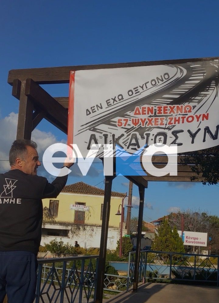 Εύβοια: Στήθηκε πανό έξω από Δημαρχείο στη μνήμη των θυμάτων των Τεμπών (pics)