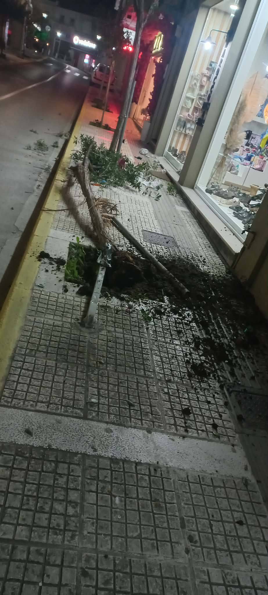 Τα ξημερώματα της Δευτέρας 2 Μαρτίου πολίτες της πόλης του Αλιβερίου που περπατούσαν στο κέντρο της πόλης ήρθαν αντιμέτωποι με ξεριζωμένα δέντρα από παρτέρια σε πεζοδρόμια.