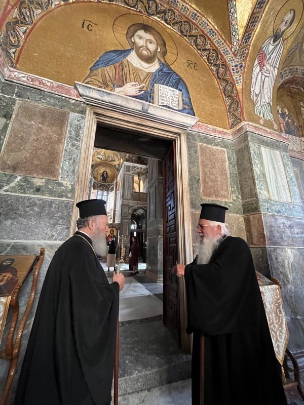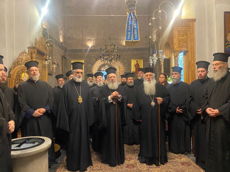 Ο δε Σεβασμιώτατος κ. Γεώργιος εξέφρασε τη χαρά του για την επίσκεψη αυτή και με συγκίνηση ανέφερε ότι η καλή επικοινωνία και αγαπητική γειτονία των δύο Ι. Μητροπόλεων οφείλεται και στη μακροχρόνια φιλία μεταξύ του ιδίου και του Σεβασμιωτάτου Ποιμενάρχου μας κ. Χρυσοστόμου, ενώ επεσήμανε στους παρόντες Κληρικούς, να καλλιεργούν, ως κανόνα πνευματικό, την μεταξύ τους αγάπη.