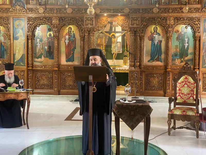 Αμέσως μετά, ο Σεβασμιώτατος καλωσόρισε τους Ιερείς και εξέφρασε τη χαρά και τη συγκίνηση της τοπικής μας Εκκλησίας για την επάξια ανάδειξη του μέχρι πρότινος Ιεροκήρυκος της Ιεράς Μητροπόλεώς μας, αρχιμ. Ιωάννου Καραμούζη, εις Επίσκοπον.