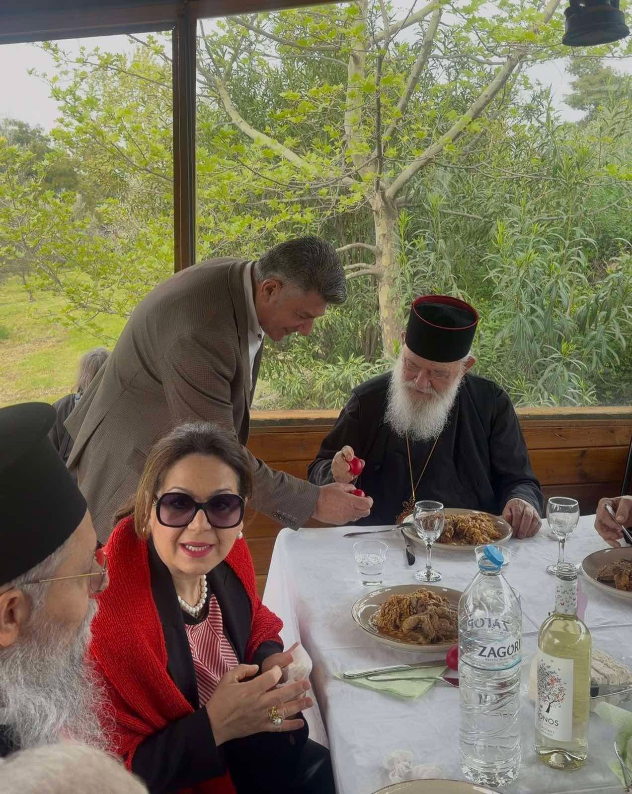 Ιδιαίτερη στιγμή της ημέρας αποτέλεσε και η συνέχεια μετά τη Θεία Λειτουργία, όταν ο Αρχιεπίσκοπος παρέθεσε γεύμα σε εγκάρδιο κλίμα, ανταλλάσσοντας ευχές με τους παρευρισκόμενους. Σε μια συμβολική και ανθρώπινη εικόνα, ο Δημήτρης Γκίκας τσούγκρισε πασχαλινό αυγό με τον Αρχιεπίσκοπο Ιερώνυμο, σφραγίζοντας τη συνάντηση με ένα μήνυμα ελπίδας, ενότητας και πνευματικής εγγύτητας. Και φυσικά πήρε την ευχή του!