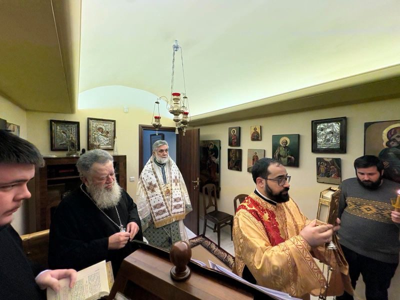 Την Τετάρτη 24 Δεκεμβρίου 2025, παραμονή Χριστουγέννων, στον Ιερό Παρεκκλήσιο Ευαγγελισμού της Θεοτόκου του Επισκοπείου της Ιεράς Μητροπόλεως Χαλκίδος τελέστηκαν οι ιερές ακολουθίες των Μεγάλων Ωρών, του Μ. Εσπερινού της Εορτής και εν συνεχεία η Θεία Λειτουργία του Μ. Βασιλείου, ιερουργούντος του Θεοφιλεστάτου Επισκόπου Σκοπέλου κ. Νικοδήμου και εκκλησιασθέντος του Σεβασμιωτάτου Ποιμενάρχου μας, Μητροπολίτου Χαλκίδος κ. Χρυσοστόμου.