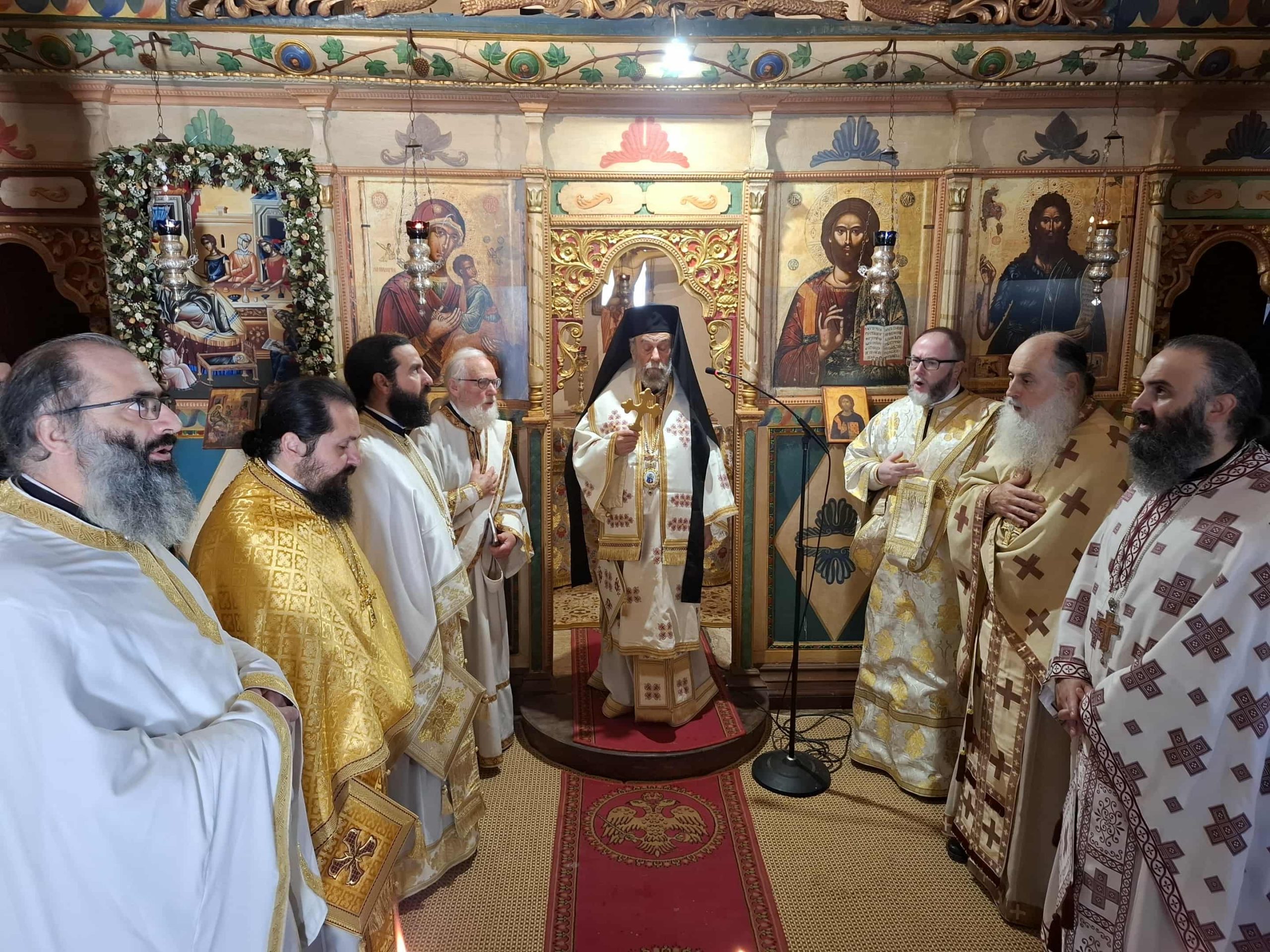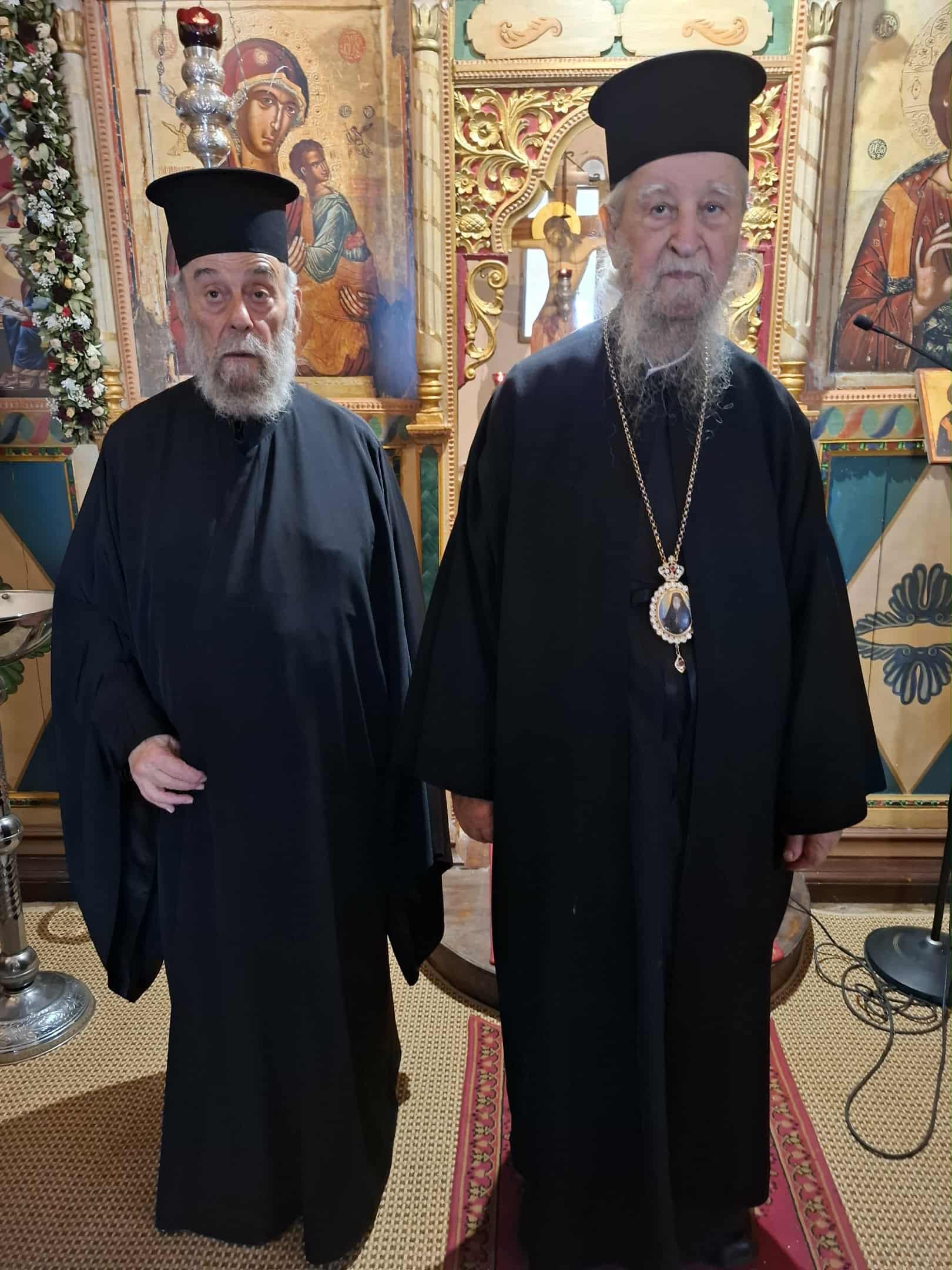 Εκ του αναλογίου ήταν συμπροσευχόμενος και ψάλλων ο οικείος Ποιμενάρχης Σεβασμιώτατος Μητροπολίτης Καρυστίας και Σκύρου κ. Σεραφείμ, ο οποίος προ της απολύσεως έπλεξε το έγκωμιο του εορτάζοντος Ιεράρχου διά το εκκλησιαστικό ήθος του και την προσφορά του τόσο στην Ιερά Αρχιεπισκοπή Αυστραλίας όσο και στην Ιερά Μητρόπολη Καρυστίας και Σκύρου επι 18 συναπτά ετή.