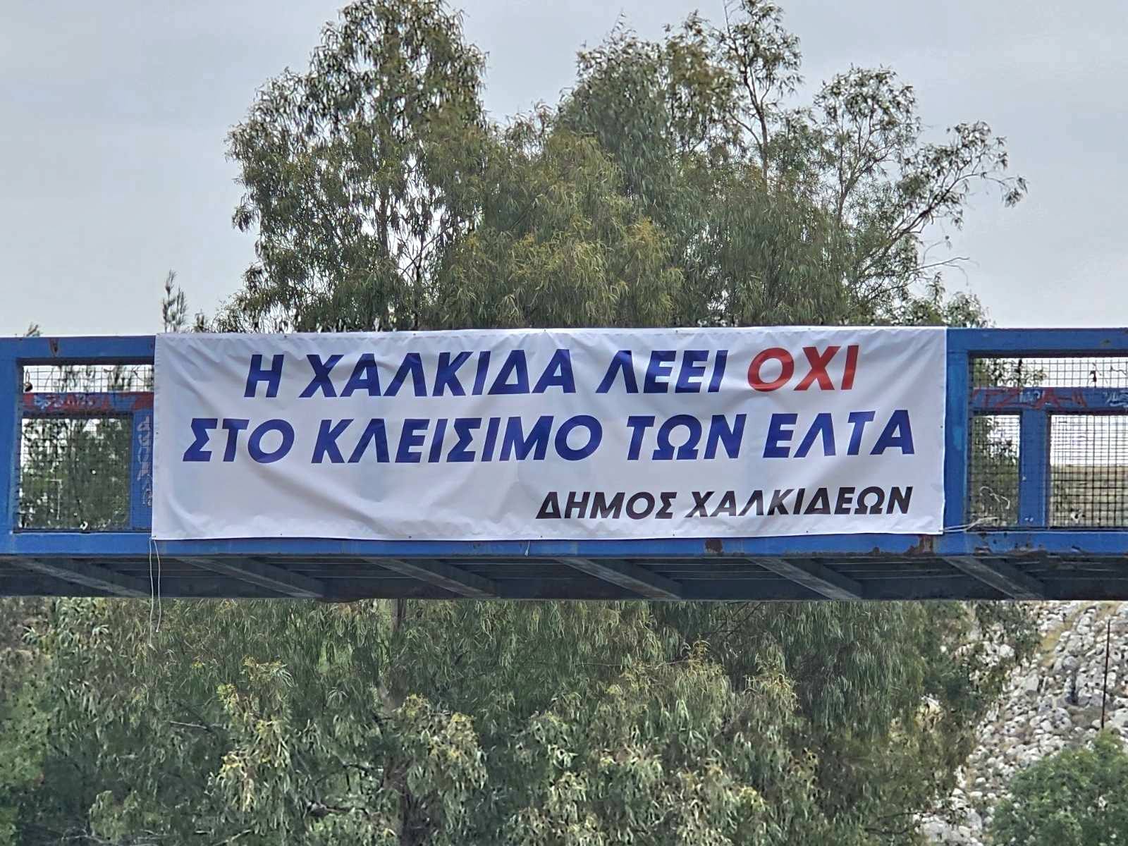 Ο Δήμος Χαλκιδέων βοά και βροντοφωνάζει με πανό αναρτημένα στην είσοδο της πόλης που δηλώνουν κατηγορηματικά ΟΧΙ στο κλείσιμο των ΕΛΤΑ σε Αρτάκη και Βασιλικό.Θύελλα αντιδράσεων έχουν προκαλέσει η απόφαση των ΕΛΤΑ να κλείσει καταστήματα σε όλη την Εύβοια αλλά και στη Χαλκίδα!