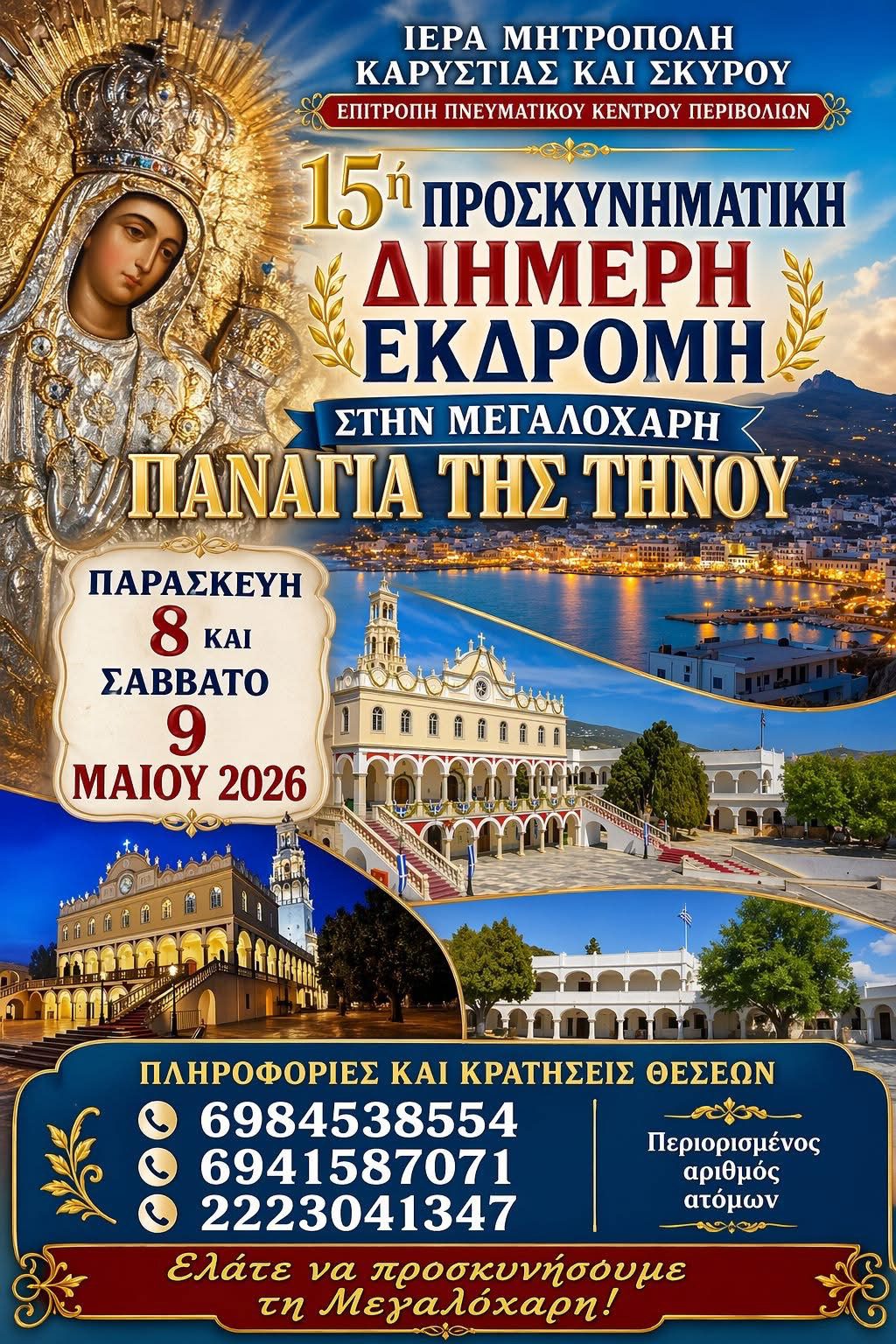 Η Εύβοια πάει στη Μεγαλόχαρη της Τήνου – Κλείστε σήμερα θέση