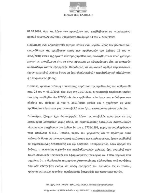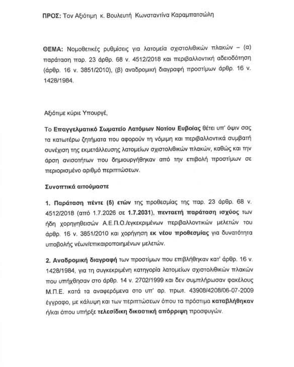 Η Νότια Εύβοια δεν αντέχει άλλη αβεβαιότητα – Παρέμβαση Καραμπατσώλη για τα λατομεία
