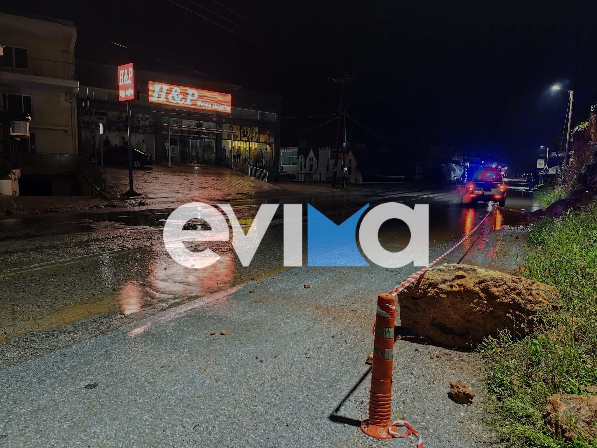 Λίγο μετά τα μεσάνυχτα, στο Αλιβέρι του Δήμου Κύμης – Αλιβερίου, η σφοδρή βροχόπτωση προκάλεσε την υποχώρηση βράχων, οι οποίοι κατέληξαν στον κεντρικό περιφερειακό δρόμο της περιοχής. Η πτώση των βράχων δημιούργησε άμεσο κίνδυνο για τους διερχόμενους οδηγούς, ενώ το σημείο κρίθηκε ιδιαίτερα επικίνδυνο λόγω της περιορισμένης ορατότητας και της ολισθηρότητας του οδοστρώματος.