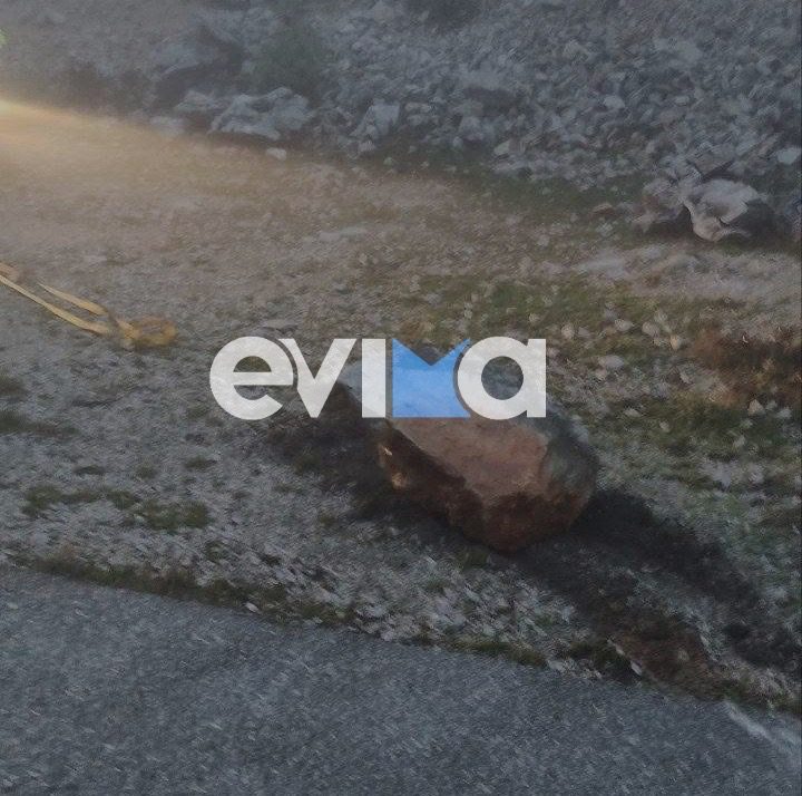 Ένας μεγάλος βράχος ξεκόλλησε λόγω των έντονων βροχοπτώσεων καί έπεσε στο οδόστρωμα τού περιφερειακού δρόμου Κύμης – Μετοχίου, στη θέση «Κατάβολο».