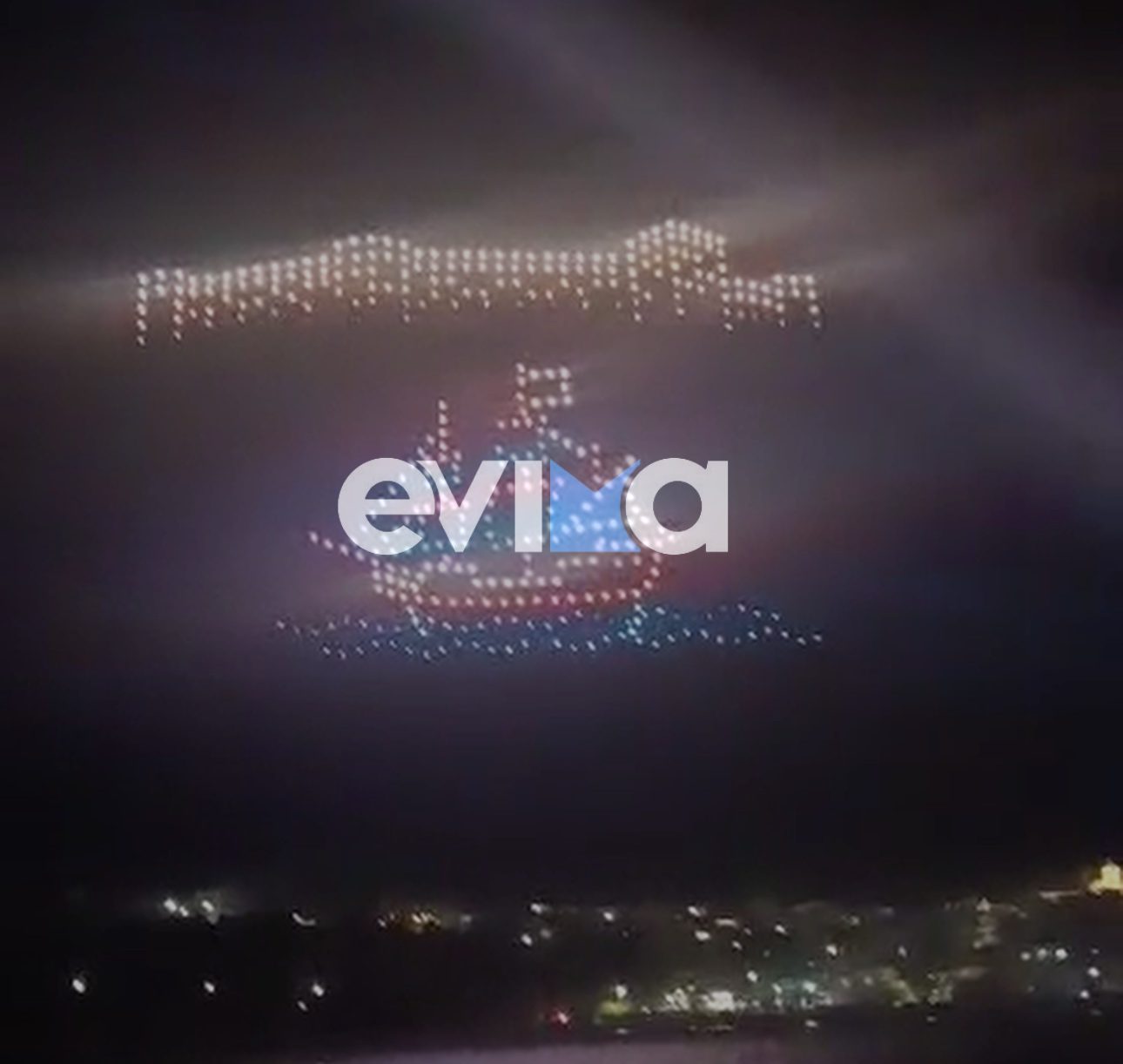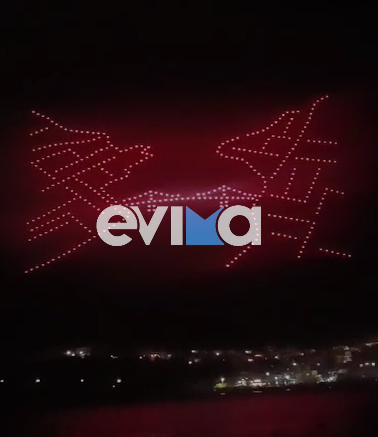 Σε απόλυτο συγχρονισμό, τα φωτεινά ιπτάμενα σμήνη σχημάτισαν στον νυχτερινό ουρανό τον Εύριπος, αποτυπώνοντας τη χαρακτηριστική ροή και τη δυναμική του ιστορικού πορθμού, ενώ στη συνέχεια «ζωντάνεψαν» τη μορφή της Αρέθουσα, αποδίδοντας με σύγχρονα μέσα έναν από τους διαχρονικούς μύθους της περιοχής.