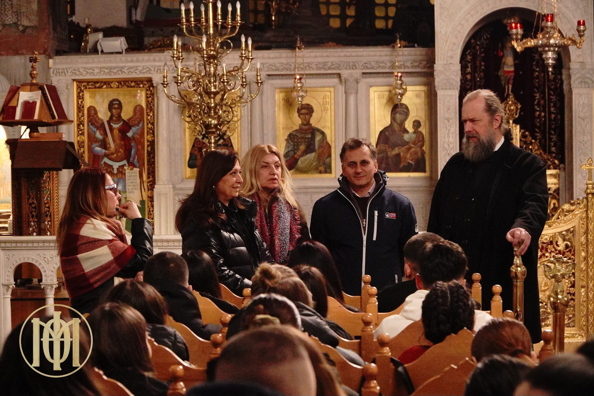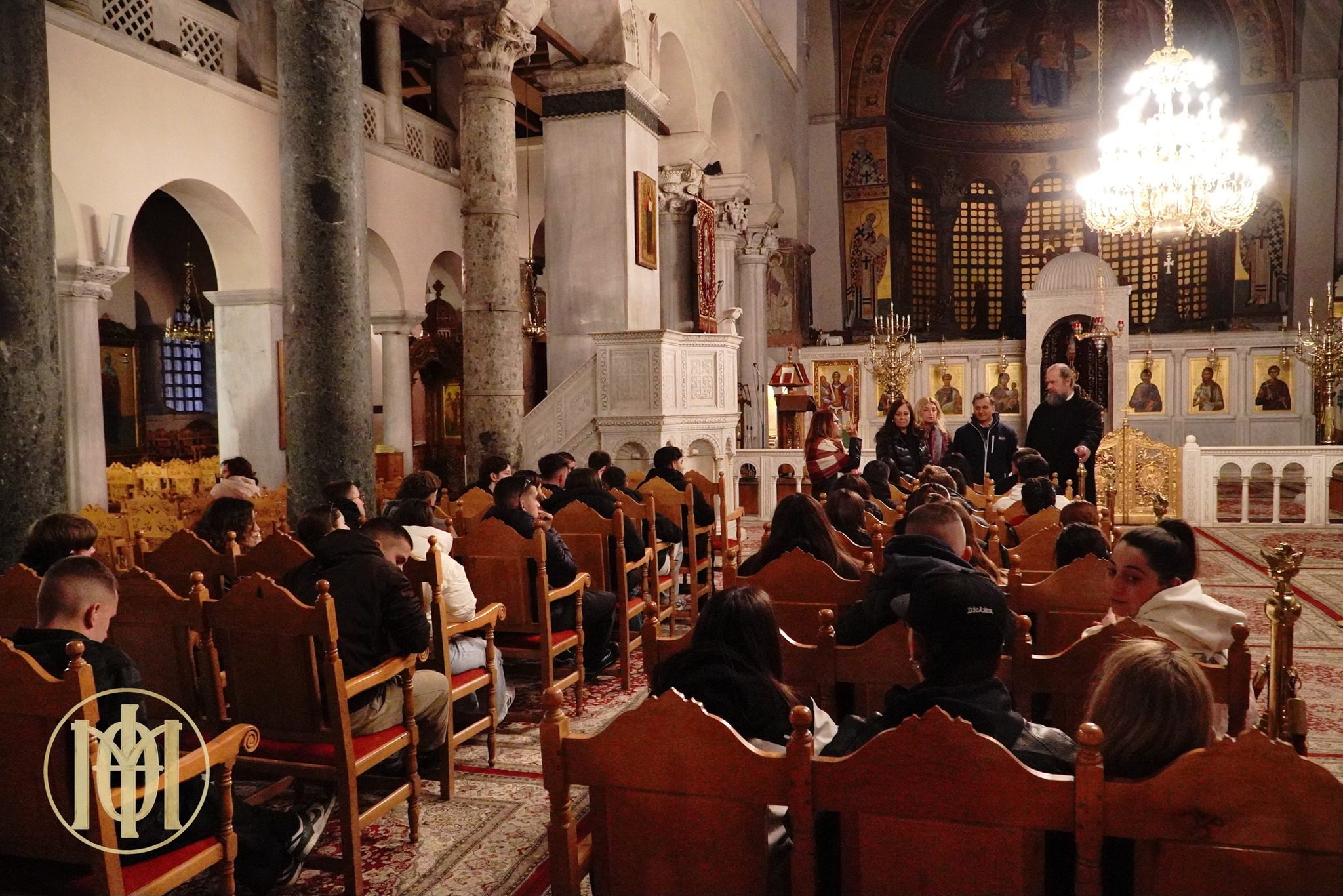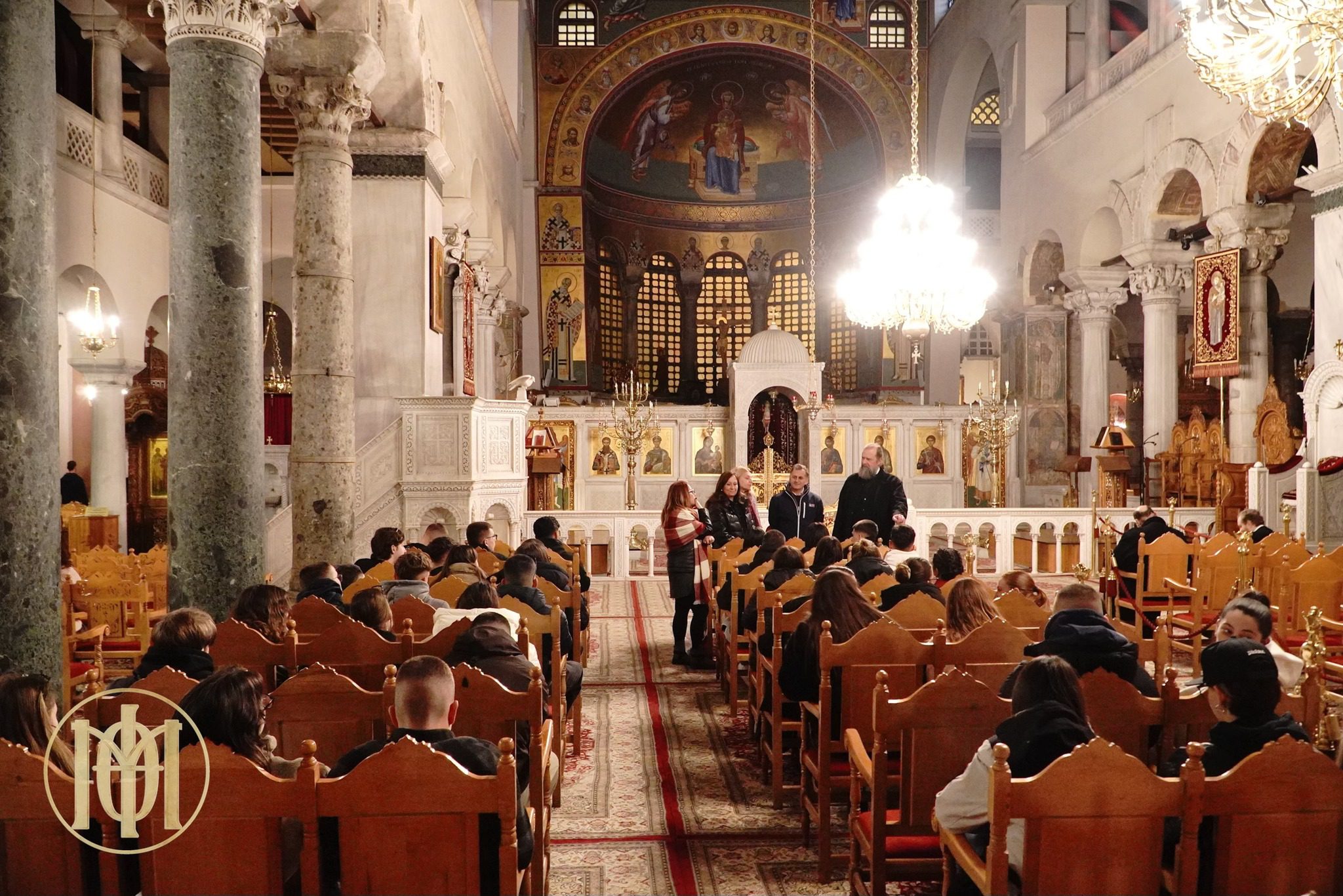 Η συνάντηση πραγματοποιήθηκε εντός του Προσκυνηματικού Ιερού Ναού Αγίου Δημητρίου - Πολιούχου.Το απόγευμα της 14ης Δεκεμβρίου ο Ευβοιώτης Ποιμενάρχης, Μητροπολίτης Θεσσαλονίκης κ. Φιλόθεος, υποδέχθηκε με εγκαρδιότητα 60 μαθητές από το Γενικό Λύκειο Ψαχνών Ευβοίας, συνοδευόμενους από τους καθηγητές τους.