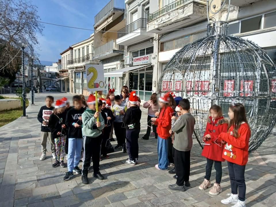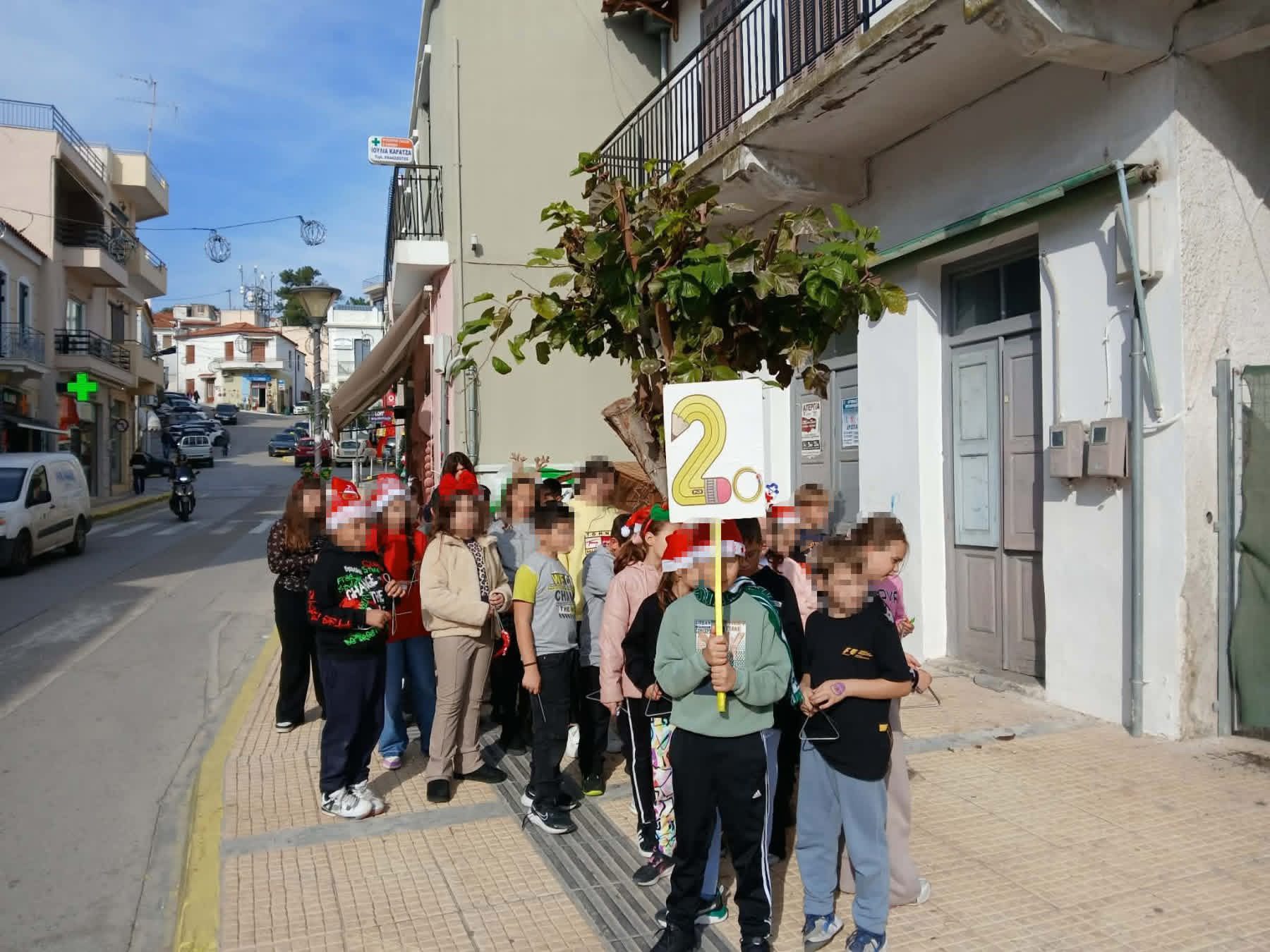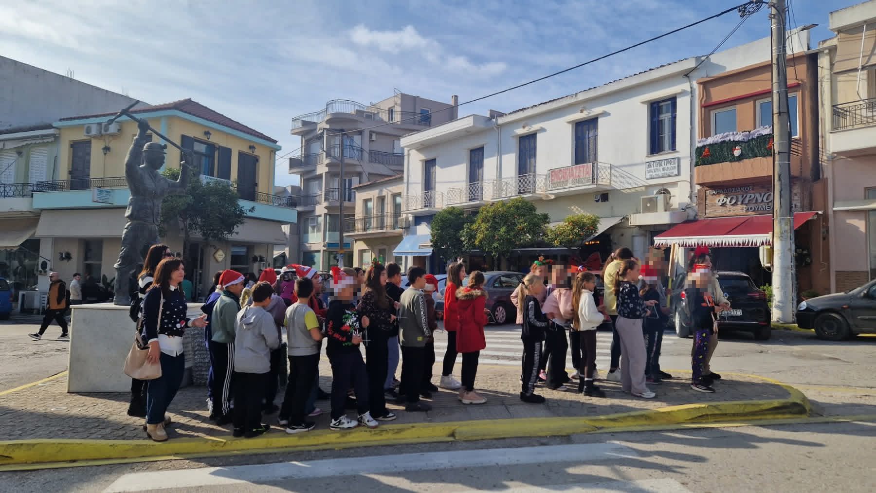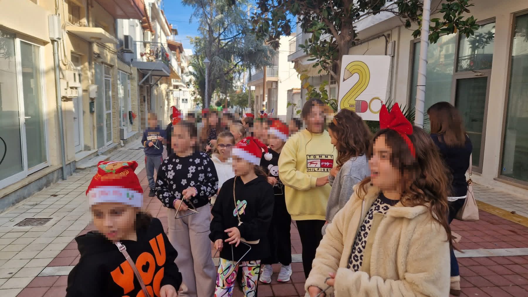 Μαθητές και μαθήτριες του δεύτερου δημοτικού σχολείου Αλιβερίου γέμισαν το κέντρο της πόλης με τις παιδικές μανούλες τους λέγοντας τα κάλαντα των Χριστουγέννων και της Πρωτοχρονιάς