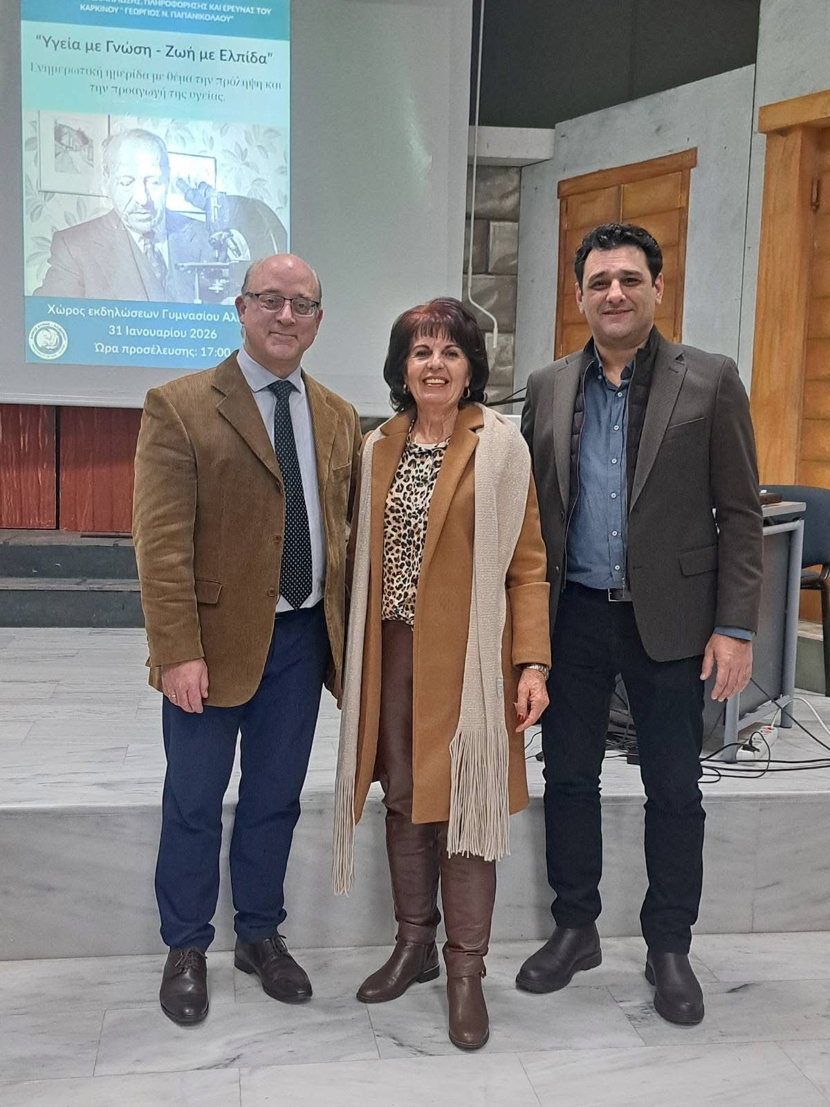 Με μεγάλη επιτυχία πραγματοποιήθηκε η ημερίδα του Ινστιτούτου Παπανικολάου «Υγεία με Γνώση – Ζωή με Ελπίδα», στο Γυμνασίου Αλιβερίου, το απόγευμα του Σαββάτου 31 Ιανουαρίου παρουσία του δημάρχου Κύμης Αλιβερίου Νίκου Μπαράκου, αντιδημάρχων, προέδρων κοινοτήτων και τοπικών συμβούλων αλλά και πλήθος κόσμου.
